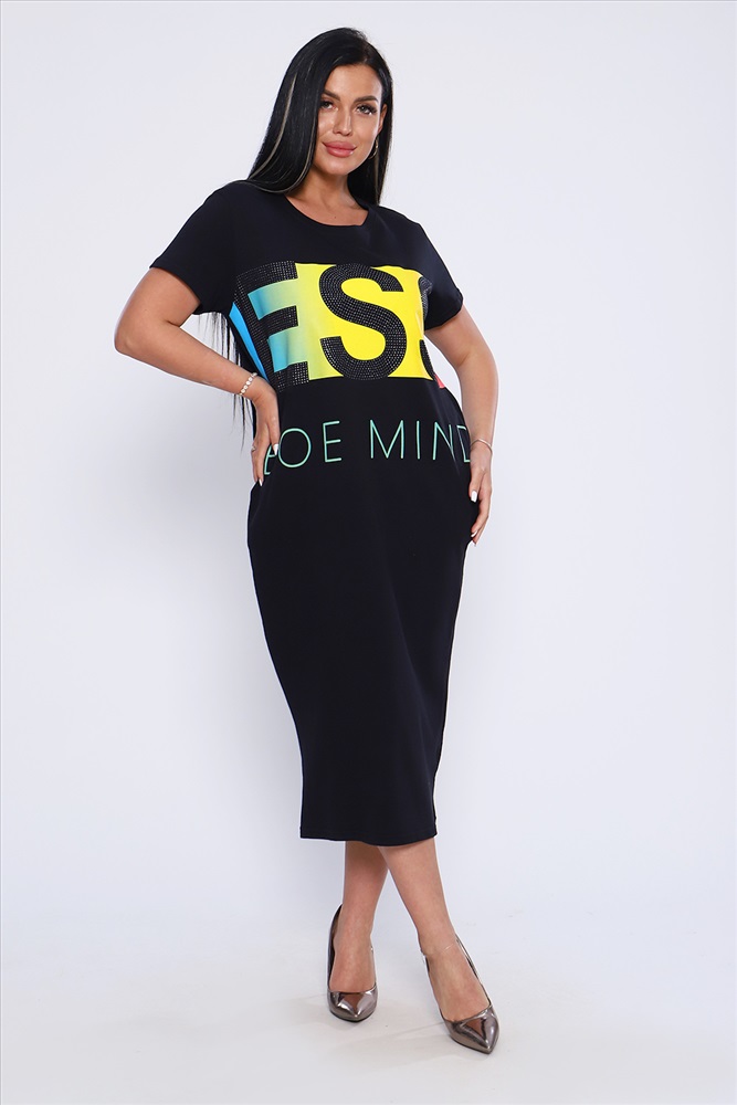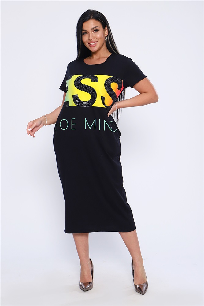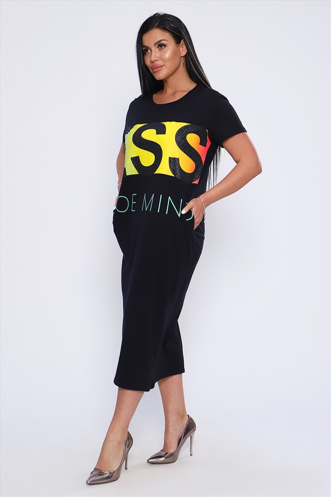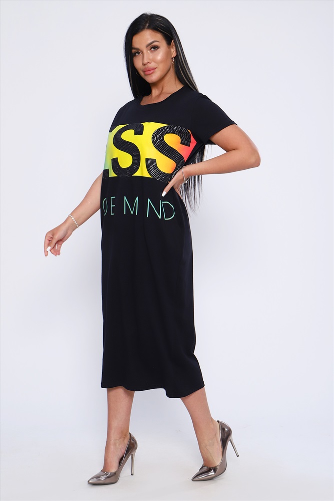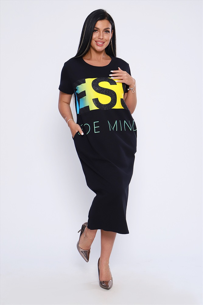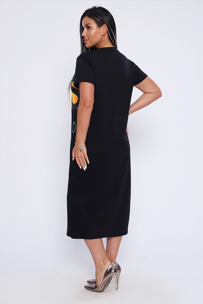 Застежка: без застежки Летнее платье с коротким рукавом, с ярким принтом, с длиной ниже колена выполнено в стиле бочонок, что удачно позволяет подчеркнуть все изгибы женского тела и спрятать лишнее. Платье имеет два внутренних кармана, обтачка горловины из основной ткани, рукав в подгибку. В производстве использована ткань высшего качествакомпакт, плотностью 170грамм.