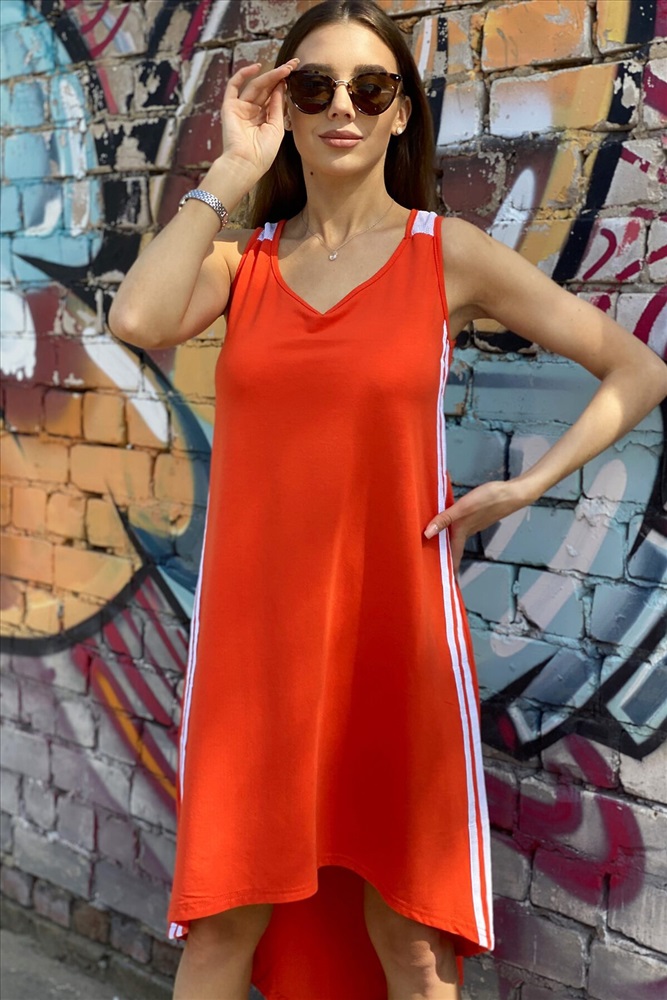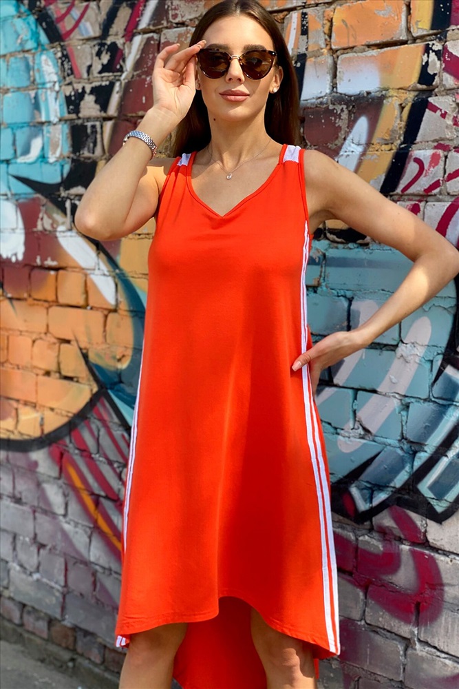 ID товара: 662788 Состав: Вискоза 50%, Полиэстер 45%, Лайкра 5% Сезон: Весна/Лето Длина: Короткая Фасон: Расклешенное Рукав: Без рукава Вырез горловины: V-образный Основная ткань: Вискоза | Вискоза "лайт" Стиль: Повседневный Страна бренда: Россия Страна производства: Россия Сарафан в спортивном стиле, трапециевидного силуэта, с V-образной горловиной, с удлиненной асимметричной линией низа. В верхней части спинки расположена кокетка из сетки. Вдоль боковых швов расположены лампасы контрастного цвета. Горловина и проймы обработаны бейкой из основного полотна. Комментарии к товару
