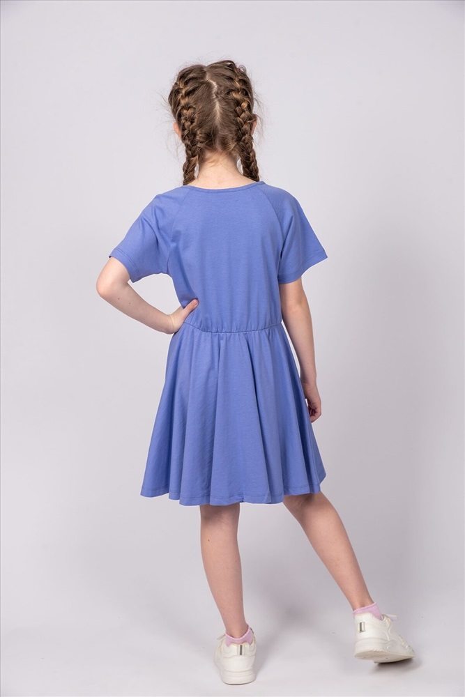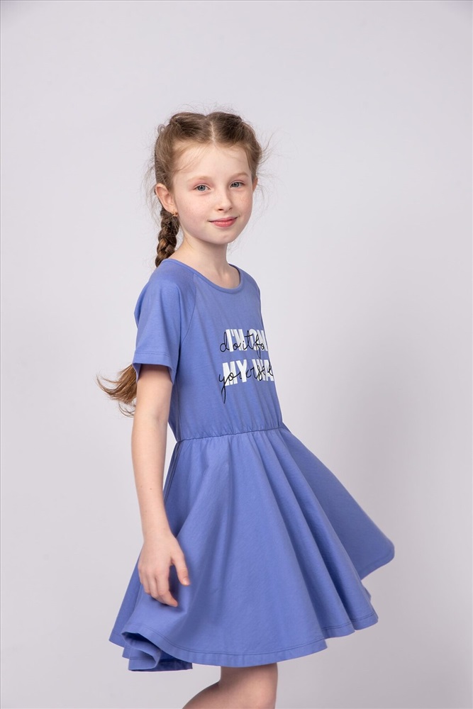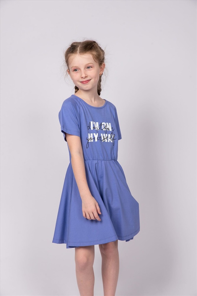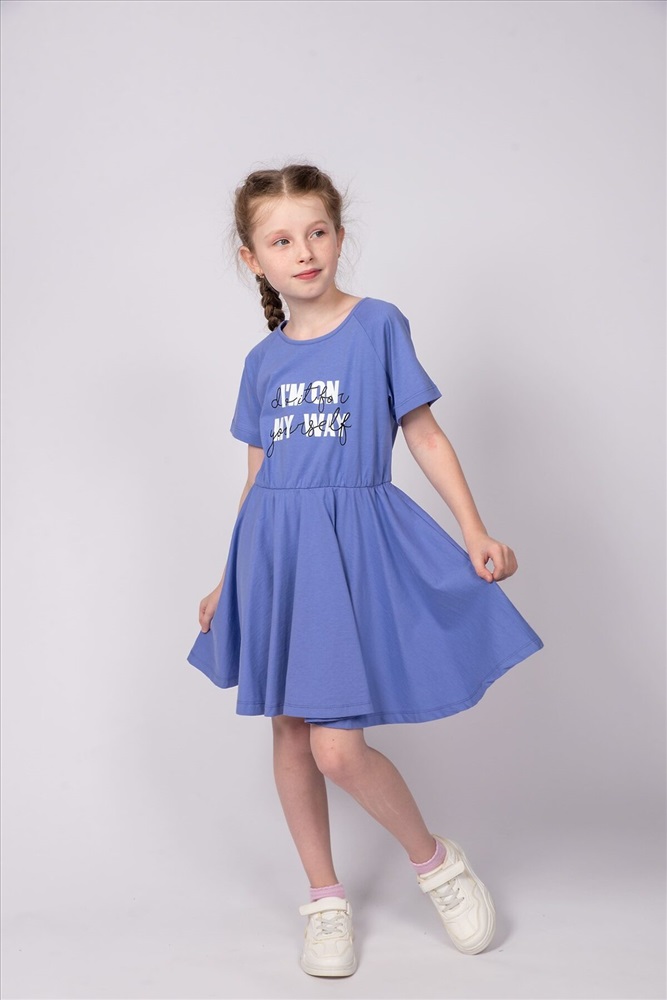 ID товара: 986791 Состав: 100% Хлопок Сезон: Весна/Лето Длина: До колена Фасон: Расклешенное Рукав: короткие Вырез горловины: Округлый Рисунок: Надпись Декоративные элементы: Принт Основная ткань: Хлопок Стиль: повседневный Вид ткани: Кулирка Страна бренда: Россия Страна производства: Россия Платье для девочки приталенного силуэта, с коротким рукавом реглан. Благодаря эластичной горловине, выполненной из рибаны, платье удобно снимать и надевать. По линии талии резинка и образуется сборку по талии. На полочке мягкий эластичный принт шелкография с глиттером. Надпись переводится как Я в пути; Сделай это для себя. Отлично подходит для детского сада, прогулок. Комментарии к товару