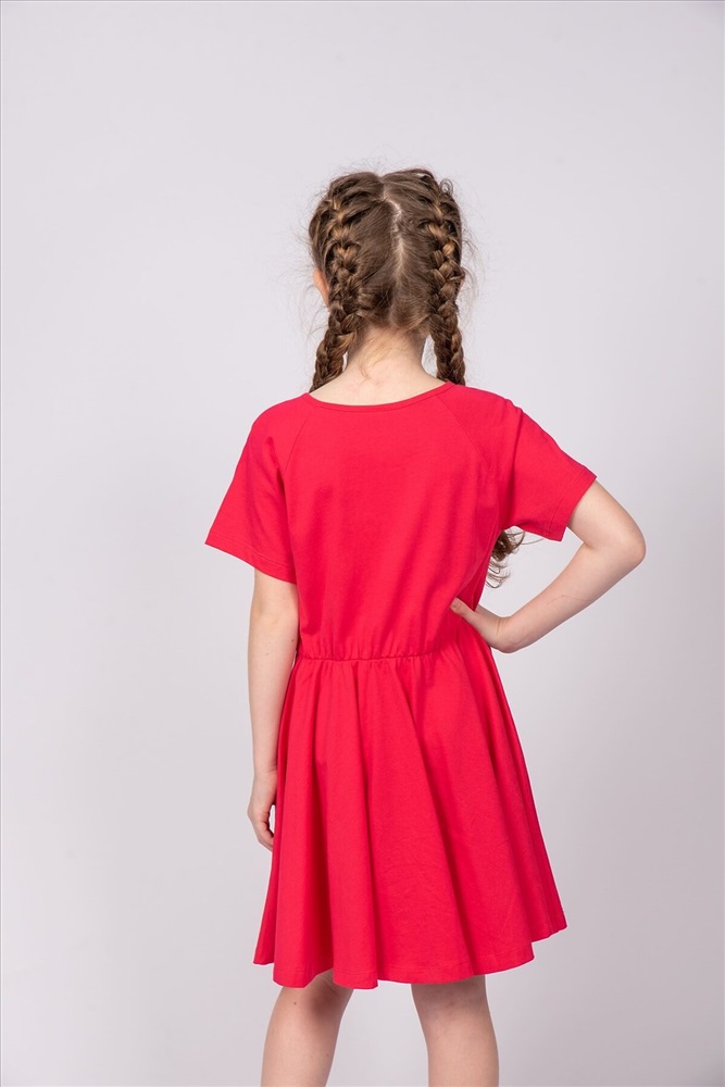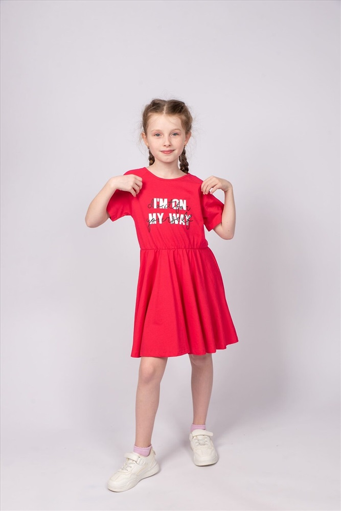 ID товара: 986792 Состав: 100% Хлопок Сезон: Весна/Лето Длина: До колена Фасон: Расклешенное Рукав: короткие Вырез горловины: Округлый Рисунок: Надпись Декоративные элементы: Принт Основная ткань: Хлопок Стиль: повседневный Вид ткани: Кулирка Страна бренда: Россия Страна производства: Россия Платье для девочки приталенного силуэта, с коротким рукавом реглан. Благодаря эластичной горловине, выполненной из рибаны, платье удобно снимать и надевать. По линии талии резинка и образуется сборку по талии. На полочке мягкий эластичный принт шелкография с глиттером. Надпись переводится как Я в пути; Сделай это для себя. Отлично подходит для детского сада, прогулок. Комментарии к товару