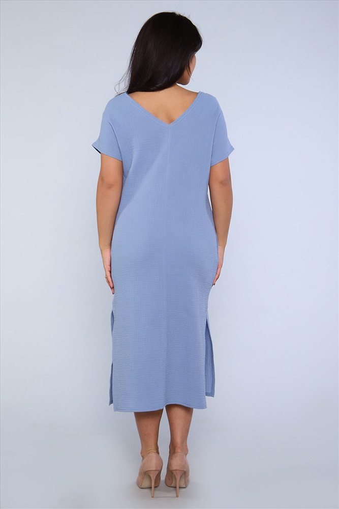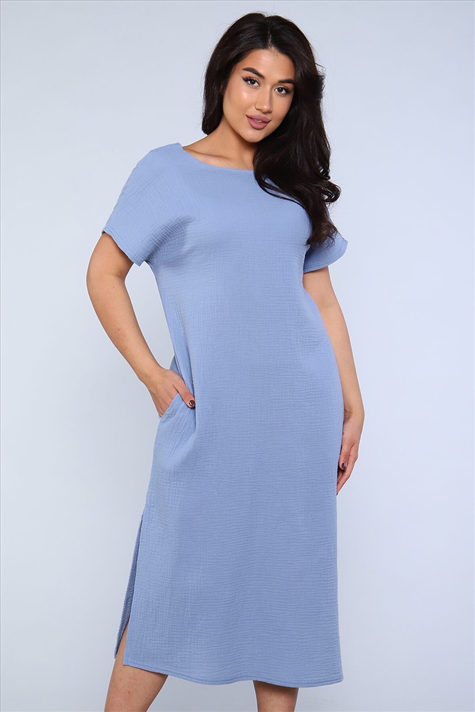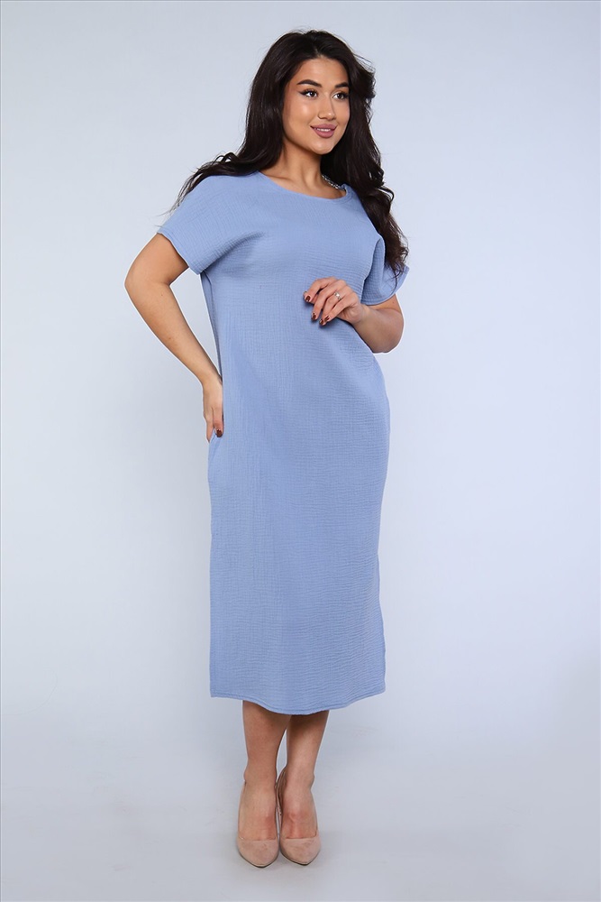 ID товара: 888493 Состав: Хлопок 100% Сезон: Весна/Лето Длина: Миди Фасон: Свободный крой Рукав: короткие Вырез горловины: Лодочка Тип карманов: В шве Декоративные элементы: Разрезы Основная ткань: Хлопок | Муслин Стиль: повседневный Страна бренда: Россия Страна производства: Россия Стильное однотонное платье-миди из хлопковой, мягкой ткани муслин двухслойный. Туника свободного кроя, горловина лодочка с глубоким V-вырезом на спинке, спущенная пройма, цельнокроеный короткий рукав, в боковых швах удобные карманы, по бокам высокие разрезы. Универсальное, комфортное платье отличный летний вариант для работы в офисе, а так же для отдыха, прогулок. Комментарии к товару