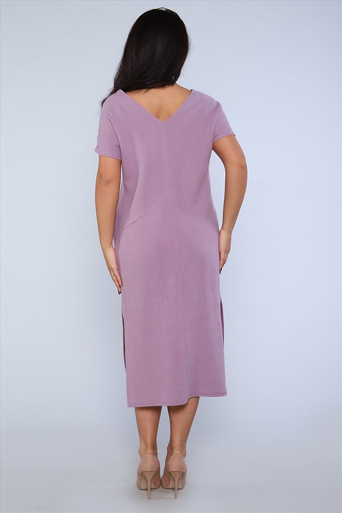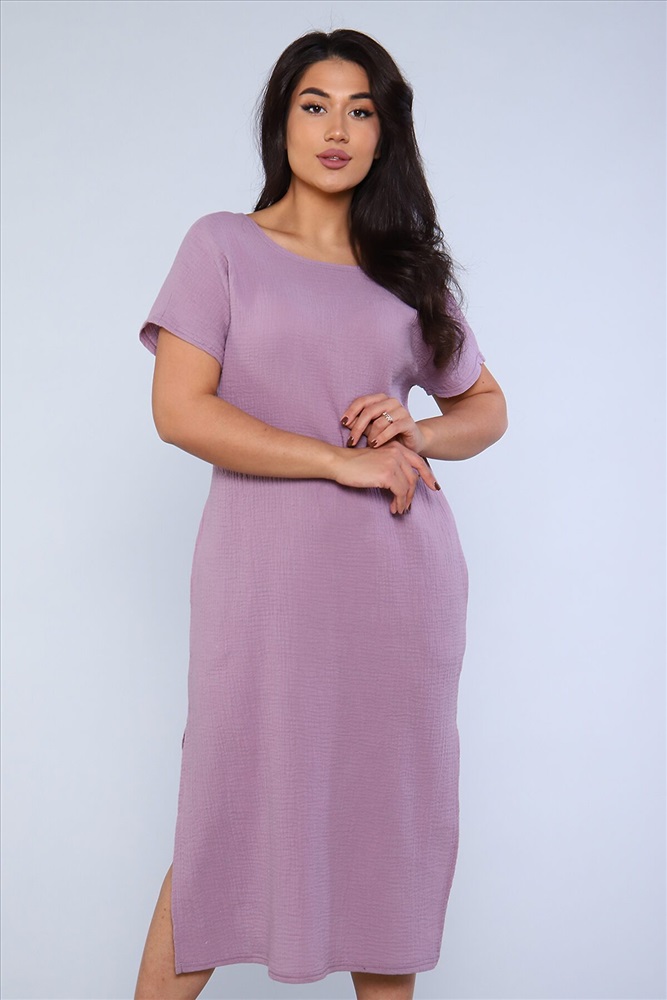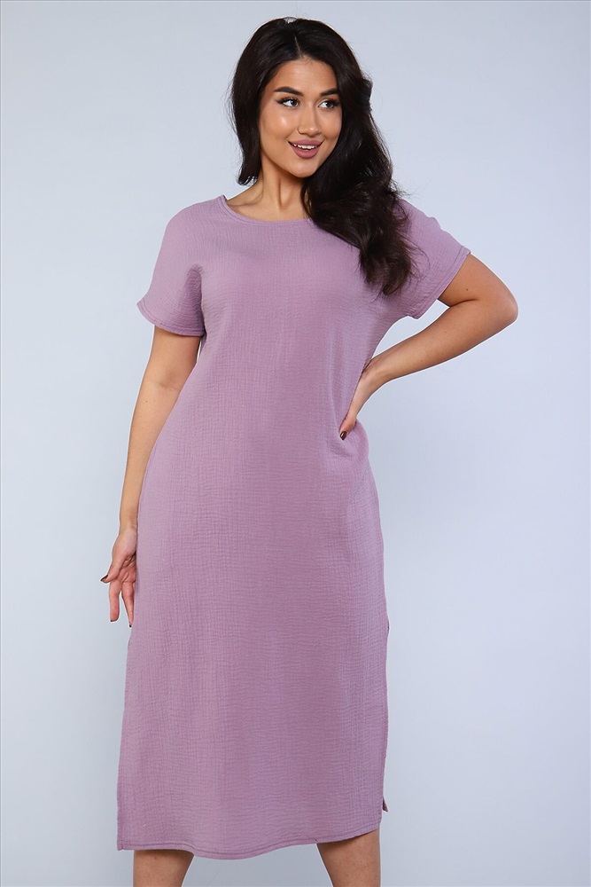 ID товара: 888495 Состав: Хлопок 100% Сезон: Весна/Лето Длина: Миди Фасон: Свободный крой Рукав: короткие Вырез горловины: Лодочка Тип карманов: В шве Декоративные элементы: Разрезы Основная ткань: Хлопок | Муслин Стиль: повседневный Страна бренда: Россия Страна производства: Россия Стильное однотонное платье-миди из хлопковой, мягкой ткани муслин двухслойный. Туника свободного кроя, горловина лодочка с глубоким V-вырезом на спинке, спущенная пройма, цельнокроеный короткий рукав, в боковых швах удобные карманы, по бокам высокие разрезы. Универсальное, комфортное платье отличный летний вариант для работы в офисе, а так же для отдыха, прогулок. Комментарии к товару