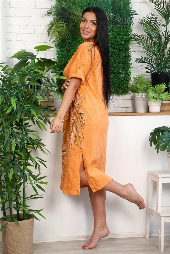ID товара: 777615 Состав: Хлопок 100% Сезон: Весна/Лето Длина: Миди Фасон: Оверсайз Рукав: Короткий Вырез горловины: V-образный Рисунок: цветочный Тип карманов: В шве Декоративные элементы: V-образный вырез на спине Основная ткань: 100% хлопок | Кулирка Стиль: Повседневный Страна бренда: Россия Страна производства: Россия Платье прямого силуэта, с V-образной горловиной спереди и сзади, с карманами, с разрезами в нижней части боковых швов. Рукав короткий, с отложным манжетом и хлястом с пуговицей. Вход в карман обработан бейкой из основного полотна. Комментарии к товару