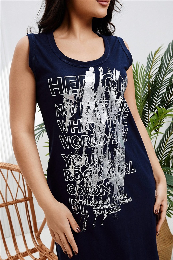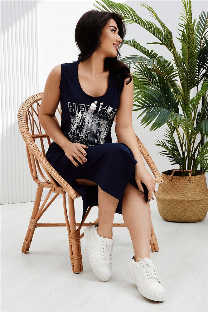 ID товара: 916384 Состав: 100% Хлопок Сезон: Весна/Лето Длина: Миди Фасон: Полуприлегающий Рукав: без рукавов Вырез горловины: Округлый Декоративные элементы: Разрезы Основная ткань: Хлопок Стиль: Повседневный Вид ткани: Кулирка Страна бренда: Россия Страна производства: Россия Удлиненное платье-сарафан приталенного силуэта без рукава. Спереди на платье модный принт, по бокам разрезы. Горловина и проймы обработаны кантом. Платье идеально подойдет для дома и отдыха. Комментарии к товару