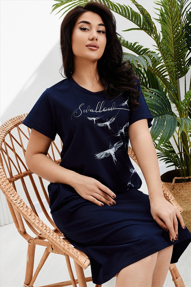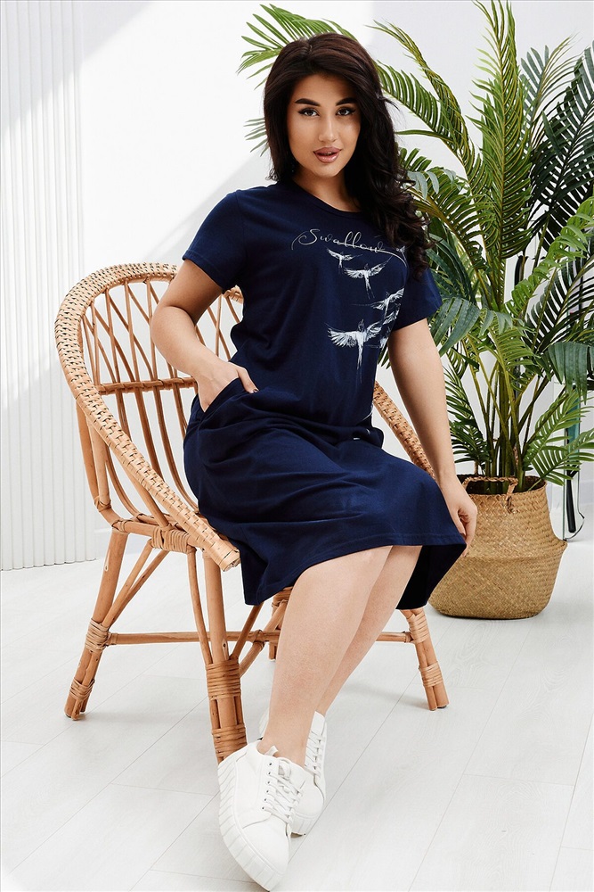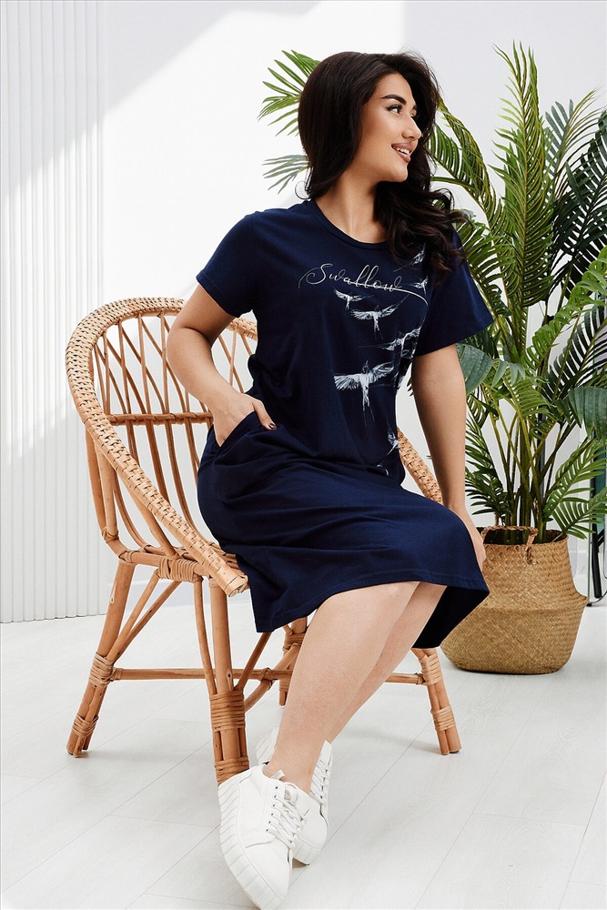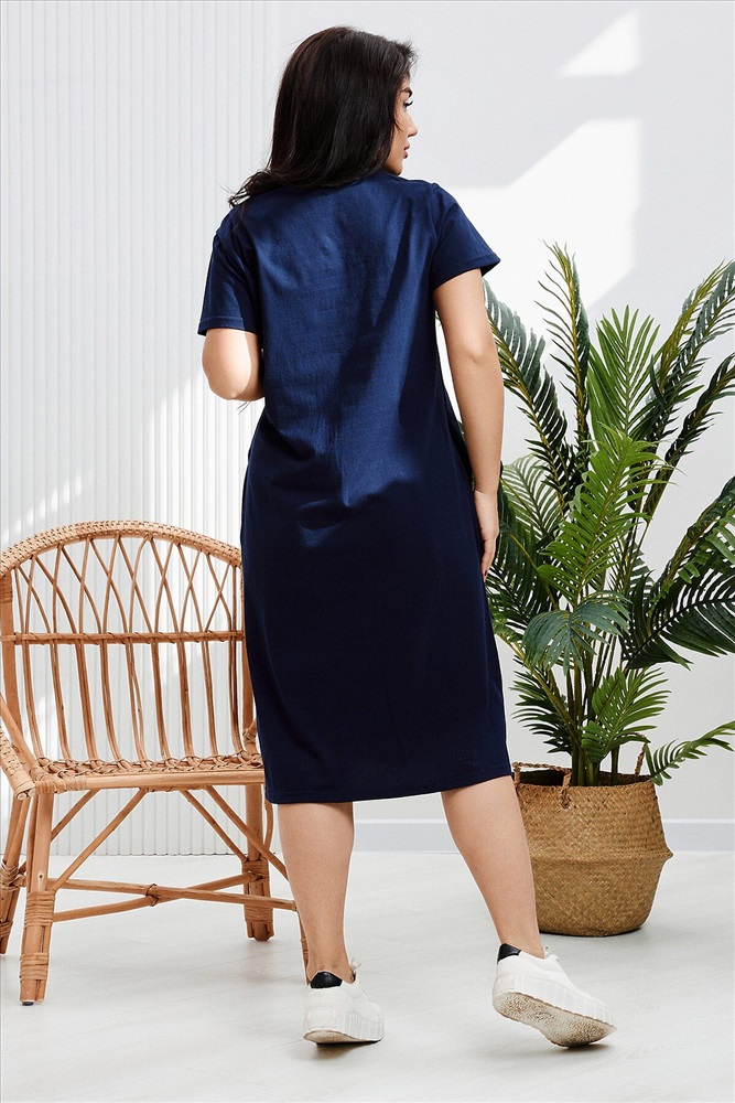Страна производства: Россия Платье-туника свободного кроя выполнено из кулирки 100% хлопок. Платье с коротким рукавом, в боках карманы, горловина обработана бейкой из основной ткани, рукава подшиты. Платье идеально подойдет для отдыха, прогулок и повседневной носки.