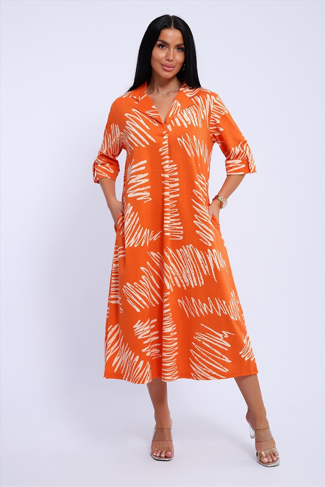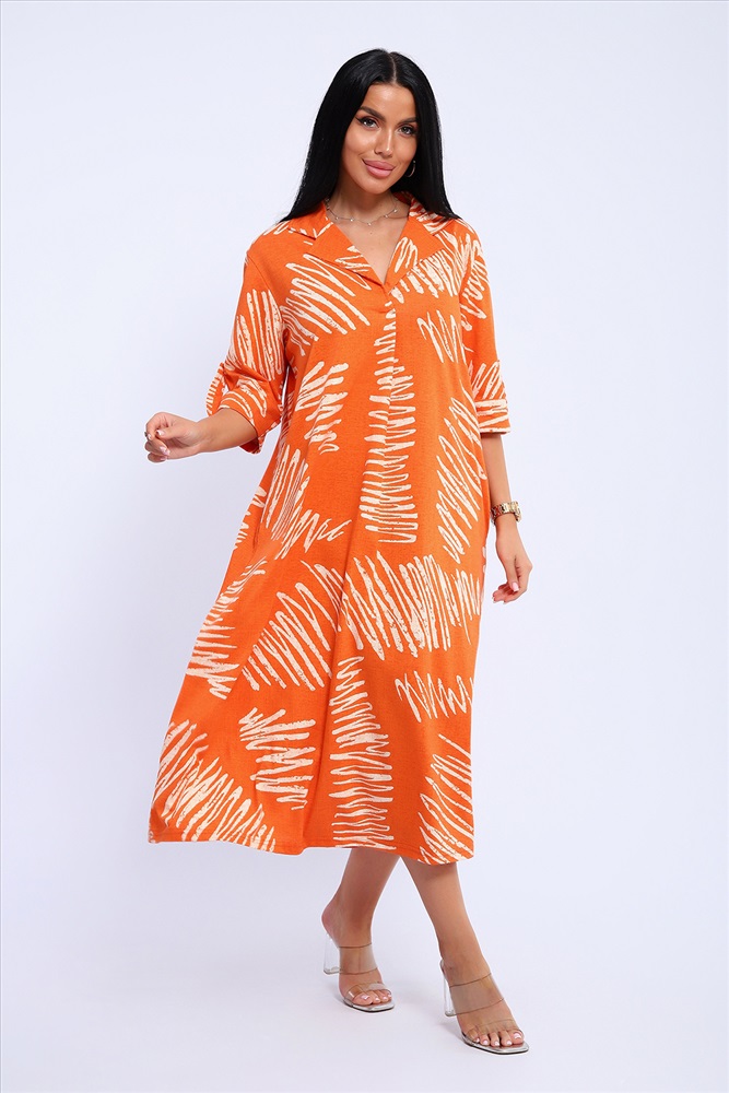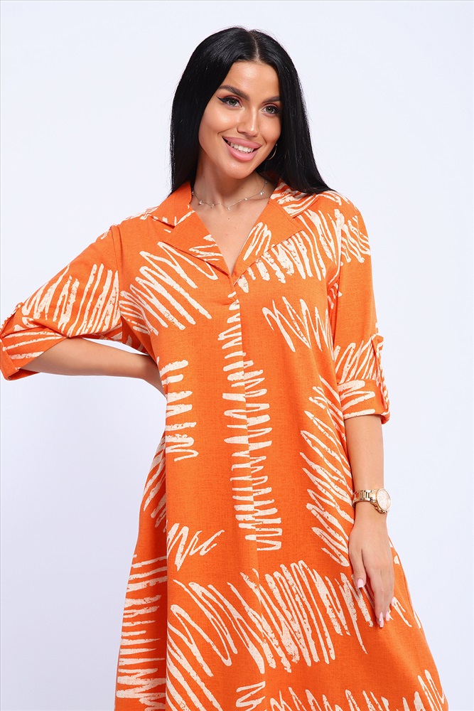 Состав: 100% хлопок Модель: Платье 83801 Тип товара: платье Материал: кулирка | кулирка Бренд: Натали Суслова Длина: средняя длина Карман: боковые Отделка: с карманами | с патами Рисунок: абстракция | геометрия Рукав: рукав 3/4 Сезонность: лето | весна Силуэт: расклешенный | свободный Стиль: пляжный | повседневный Воротник: воротник с лацканами Застежка: без застежки Платье женское свободного покроя. Воротник отложной рубашечного типа, образует V-образный вырез. Платье с карманами в боковых швах. Длина платья чуть выше щиколотки. Рукав 3/4 с манжетой, поднят патой. Размеры сдвоенные: 48 размер - на размеры 46-48 52 размер - на размеры 50-52 56 размер - на размеры 54-56 60 размер - на размеры 58-60 64 размер - на размеры 62-64 На модели представлен 48 размер. Параметры модели: 97-71-101, рост 165 см. Таблица размеров и веса