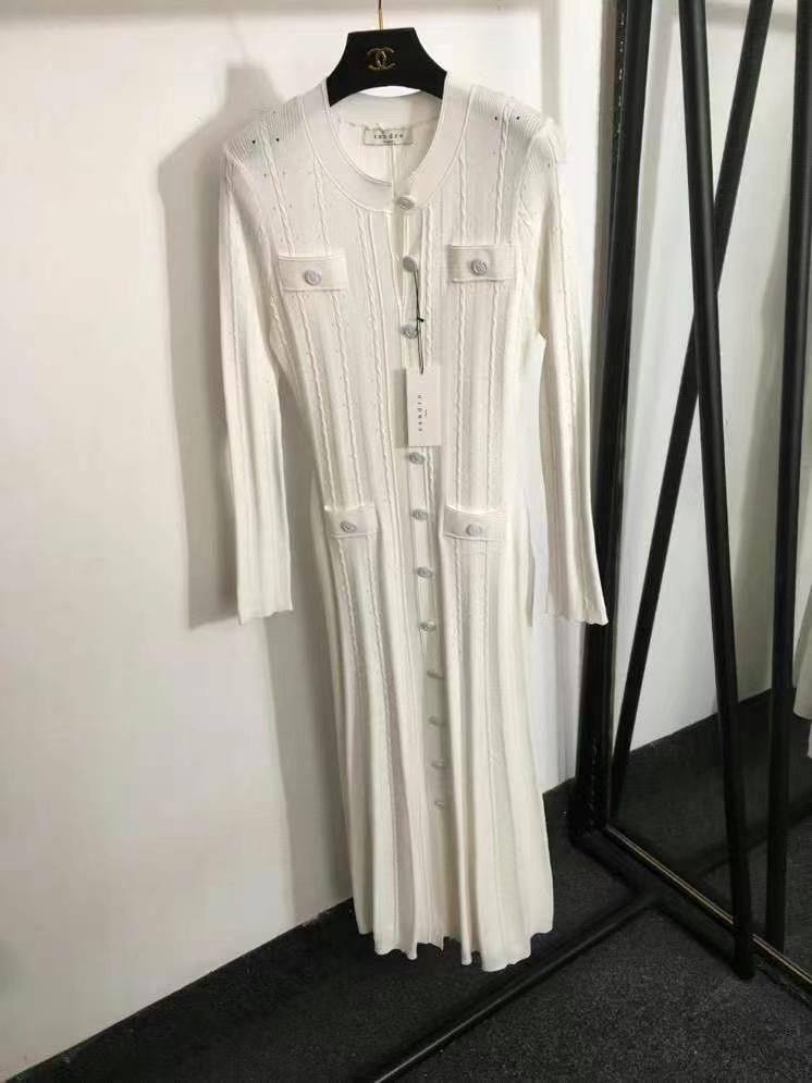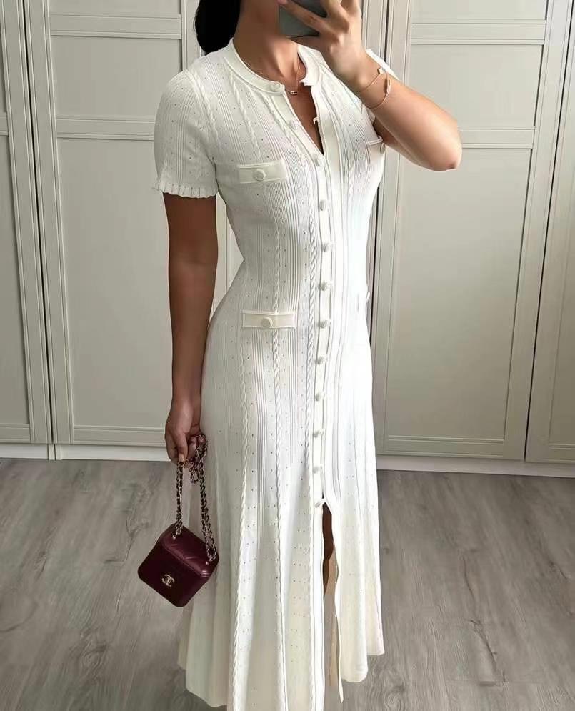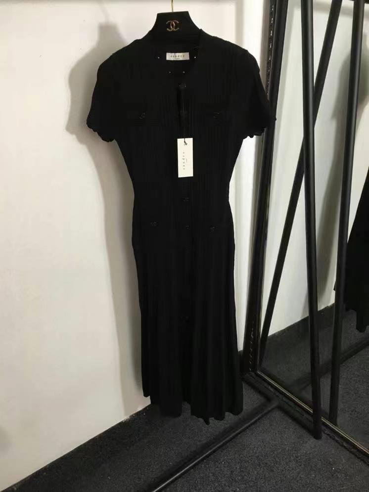Однобортное узкое трикотажное платье с новым логотипом Sandr*, высокое, эластичное, с короткими рукавами, белое, красное, черное, SML, [размер M; обхват груди 92, длина рукава 19, длина 119