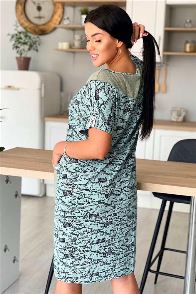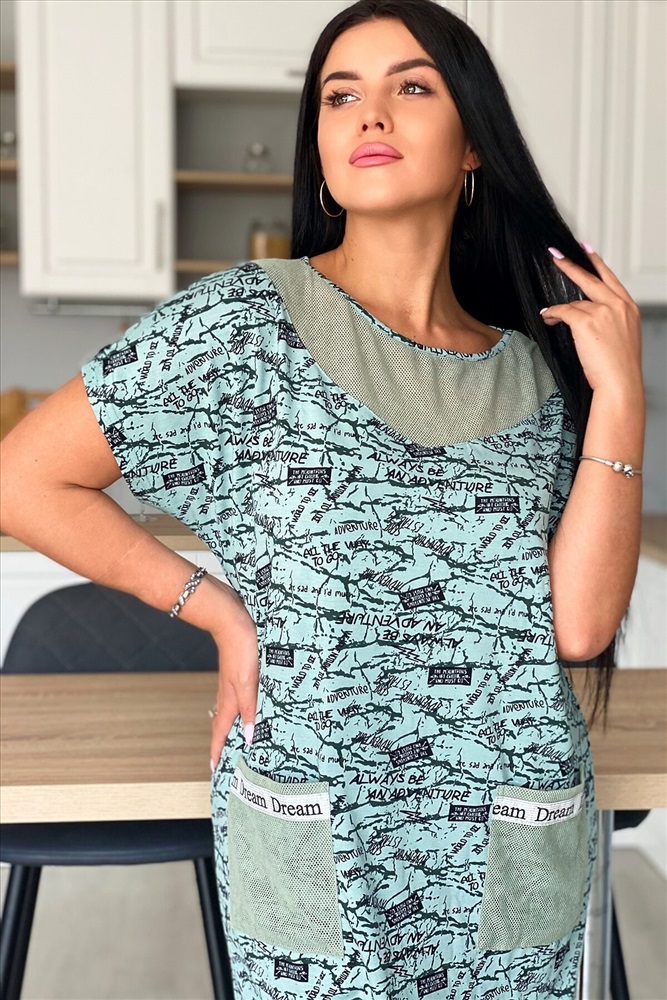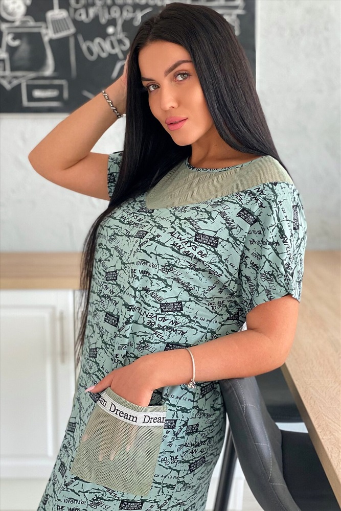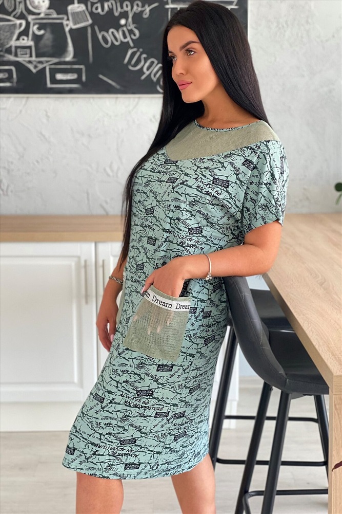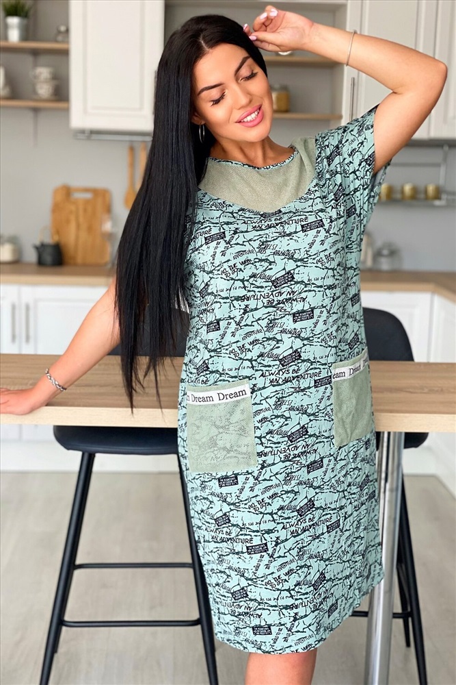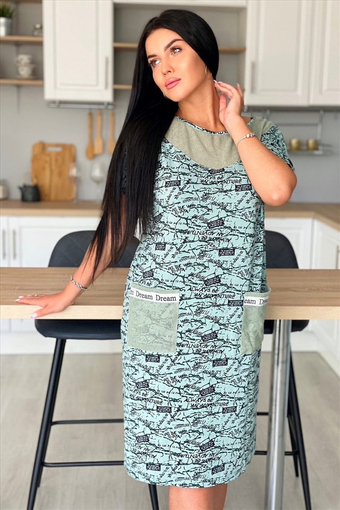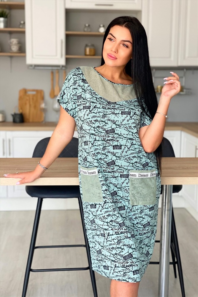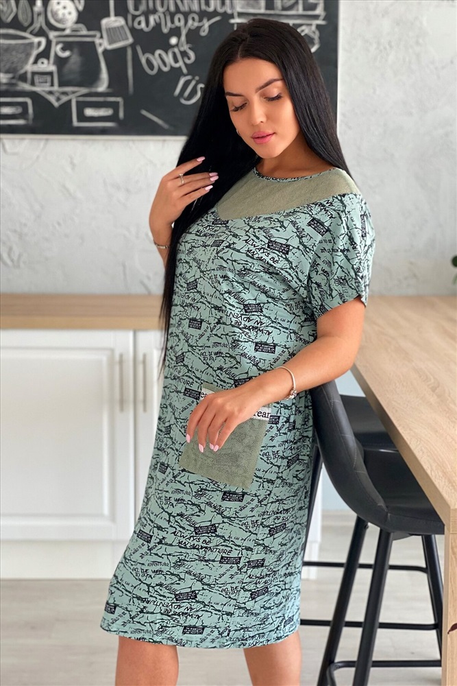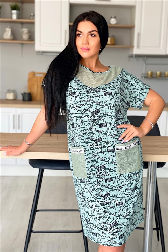 ID товара: 882126 Состав: Вискоза 92%, Лайкра 8%; Хлопок 100% Сезон: Весна/Лето Длина: Миди Фасон: Полуприлегающий Рукав: короткие Вырез горловины: Округлый Тип карманов: Накладные Основная ткань: Вискоза, сетка Стиль: Повседневный Страна бренда: Россия Страна производства: Россия Платье женское из вискозы полуприлегающего силуэта. Рукав цельнокроеный короткий. На полочке и спинке фигурная кокетка, накладные карманы из оливковой х/б сетки. По низу рукава хляст из стильной серебряной тесьмы, такая же отделка на карманах. Комментарии к товару