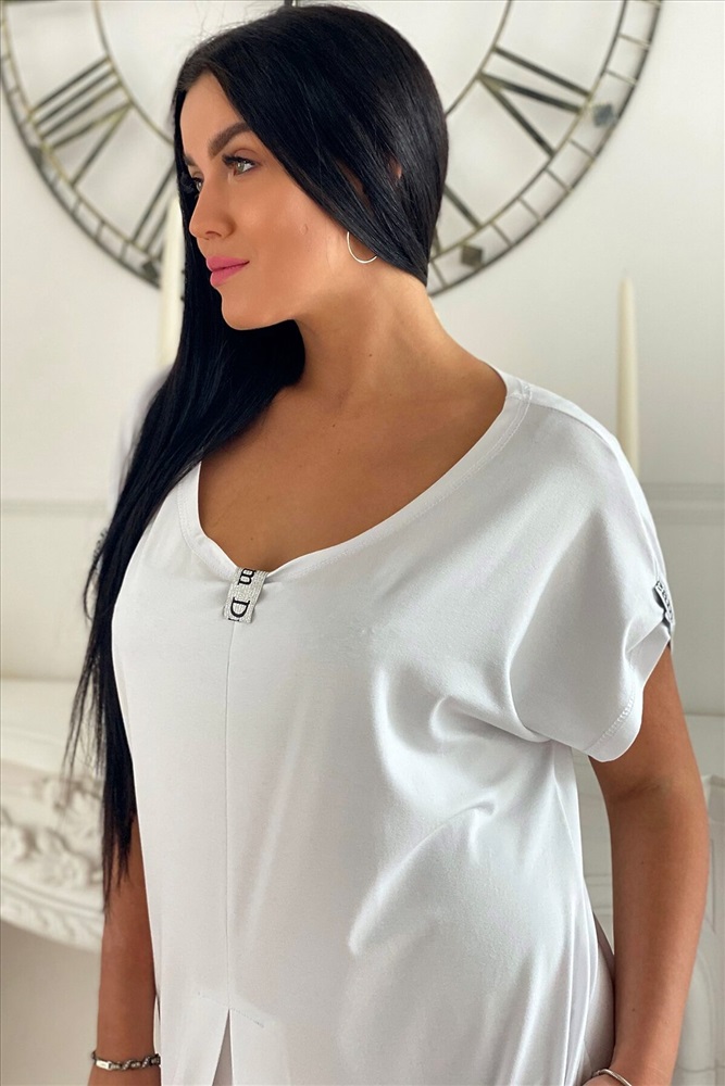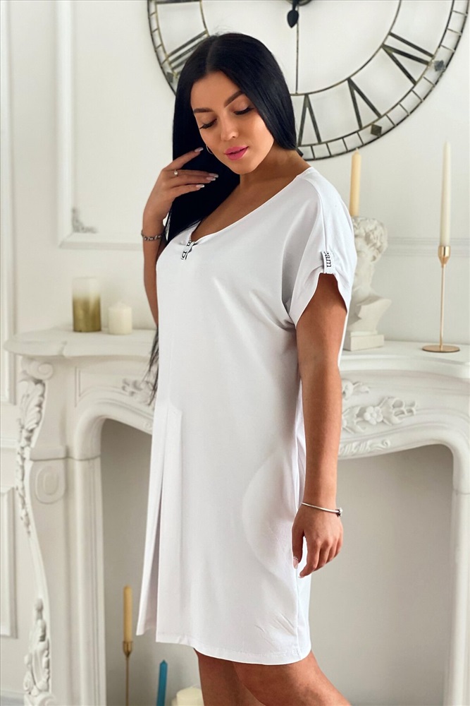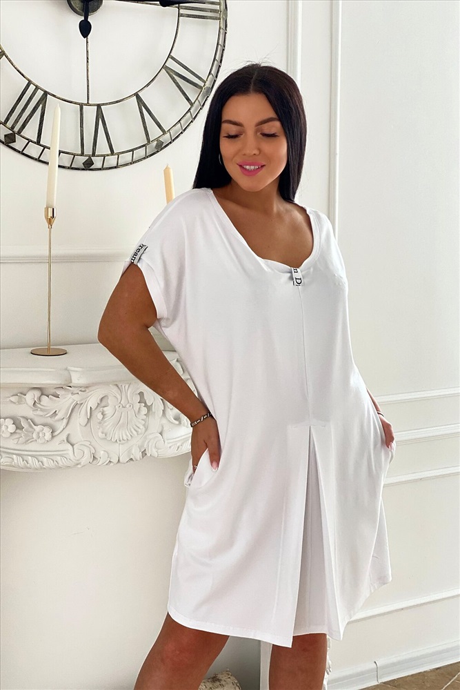 ID товара: 657370 Состав: Вискоза 92%, Лайкра 8% Сезон: Весна/Лето Длина: До колена Фасон: Прямой Рукав: Короткий Вырез горловины: V-образный Рисунок: нет Основная ткань: Вискоза | Вискоза пенье Стиль: Повседневный Страна бренда: Россия Страна производства: Россия Платье женское прямого силуэта. Рукав цельнокроенный короткий. Середина горловины полочки и низ рукава слегка собран на декоративную серебряную тесьму. От линии талии по центру полочки встречная складка. Комментарии к товару