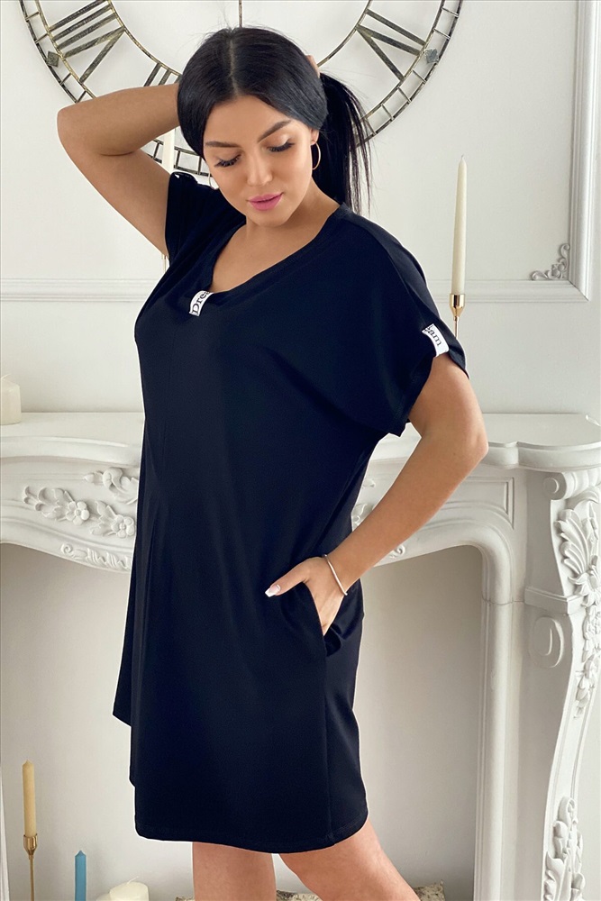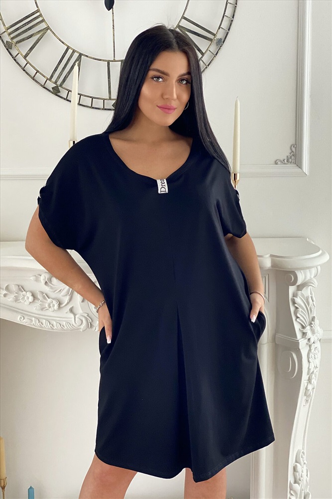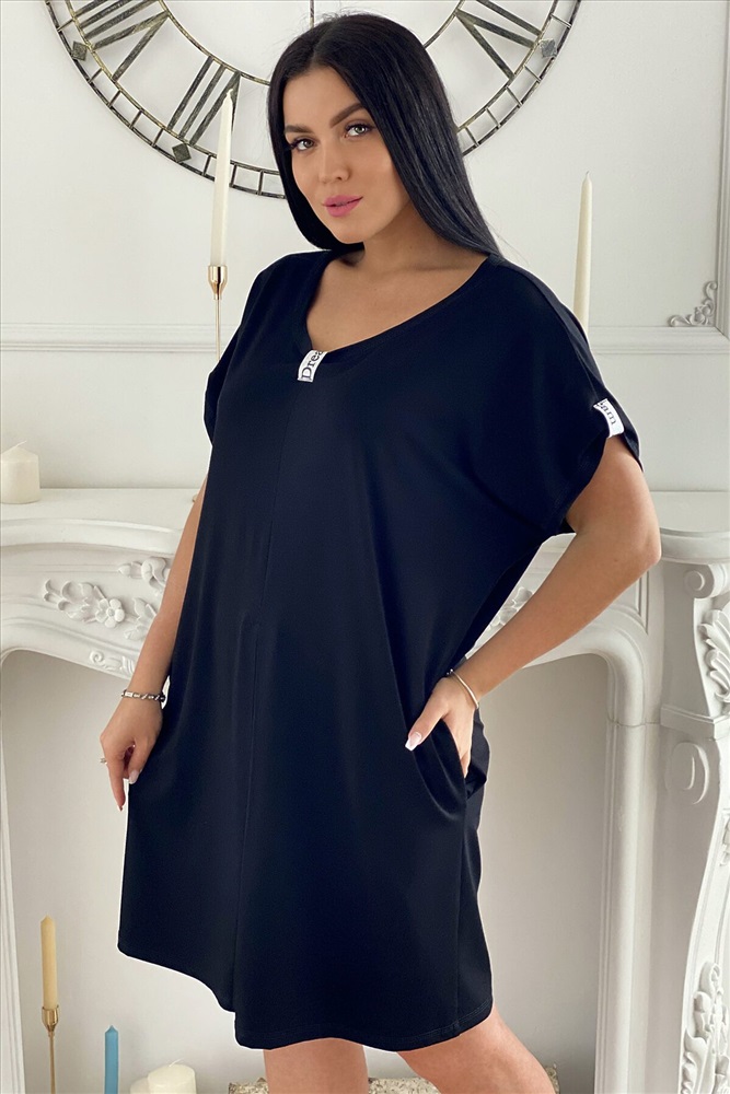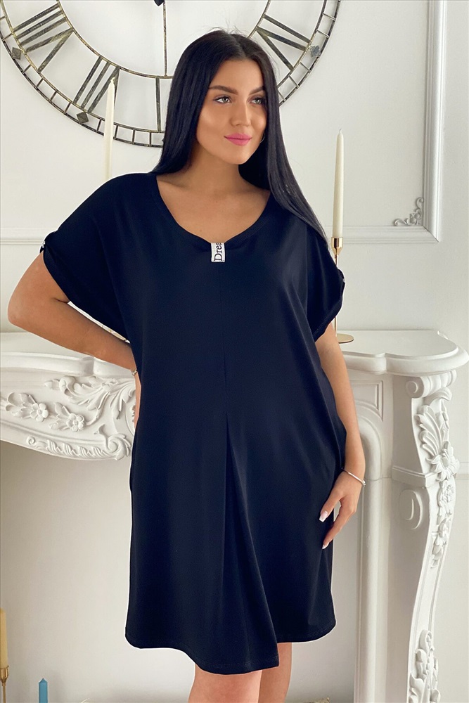 Страна производства: Россия Платье женское прямого силуэта. Рукав цельнокроенный короткий. Середина горловины полочки и низ рукава слегка собран на декоративную серебряную тесьму. От линии талии по центру полочки встречная складка.
