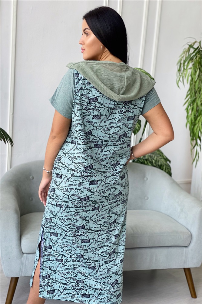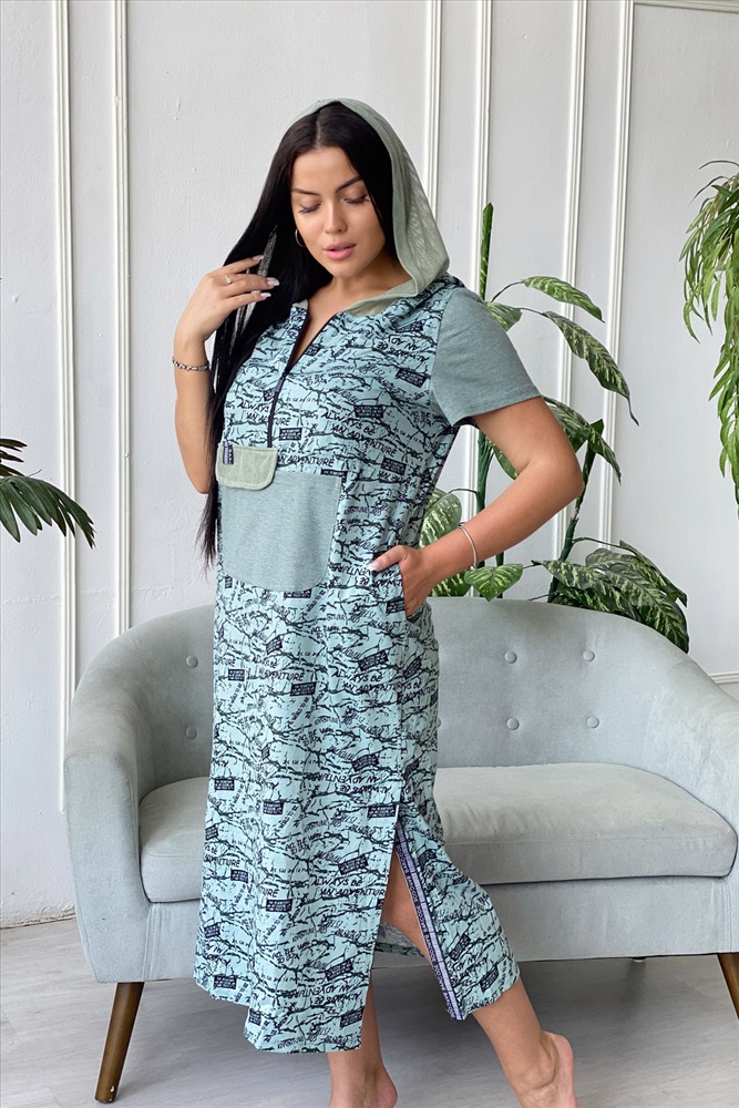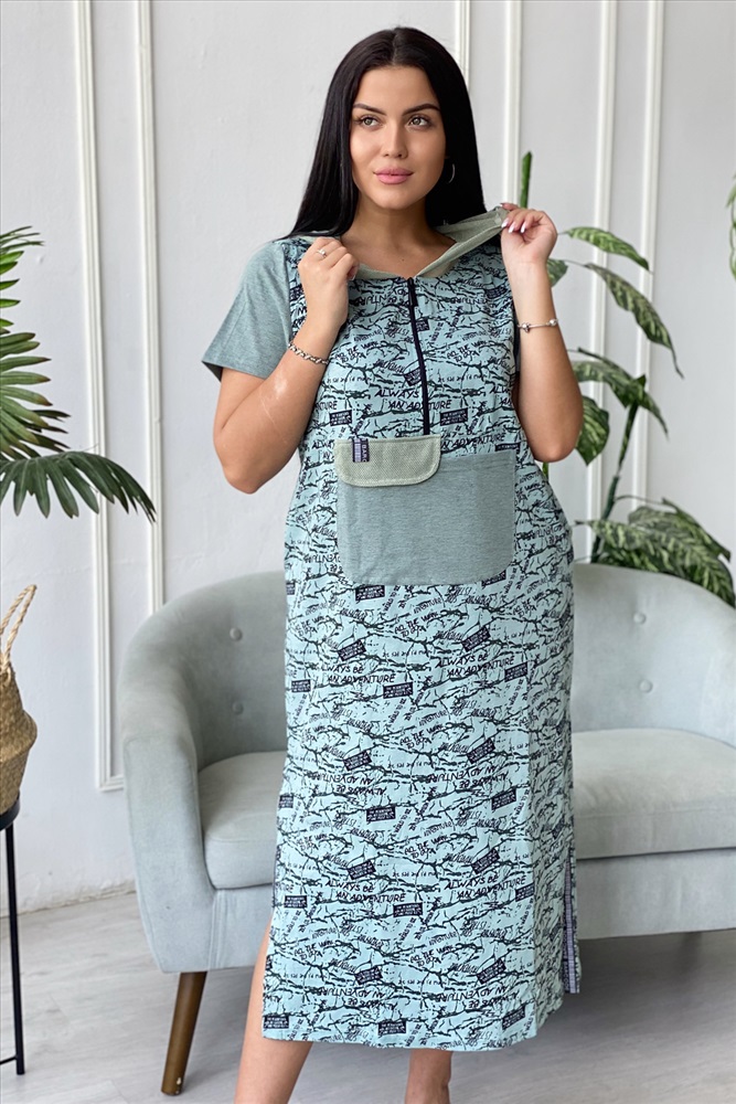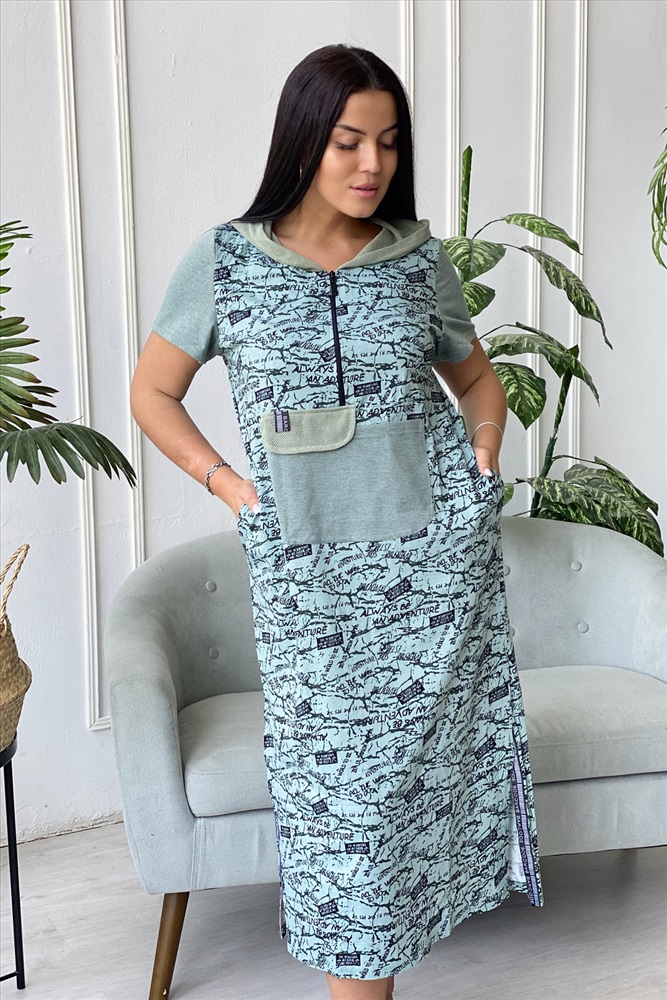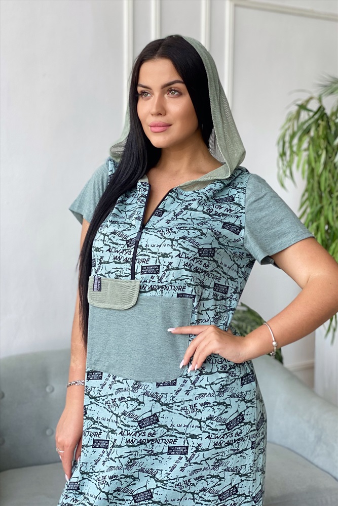 Состав: 100% хлопок Модель: Платье 9067 Тип товара: платье Материал: кулирка | кулирка Бренд: Натали Суслова Длина: длинный Карман: боковые | накладные Отделка: с карманами | с сеткой | с тесьмой Рейтинг: Рейтинг 4 и выше Рисунок: камуфляж | надпись Рукав: короткий рукав Сезонность: лето | весна Силуэт: прямой Стиль: повседневный Воротник: с капюшоном Застежка: молния Платье женское прямого силуэта. Рукав втачной короткий. Верхняя часть полочки застежка на тесьму молнию. В нижней части полочки широкий накладной карман с клапаном. Капюшон и клапан из х/б сетки. В боковом шве внутренние карманы и разрезы с декоративной тесьмой. Цвет сетки капюшона может быть черного или зеленого цвета. Таблица размеров и веса