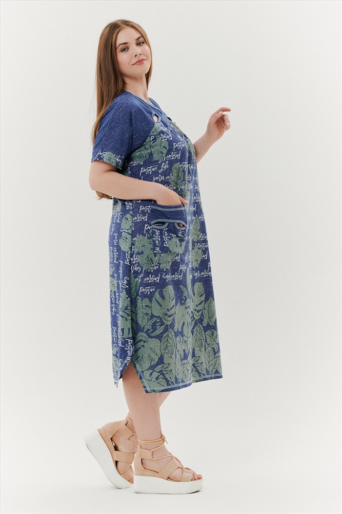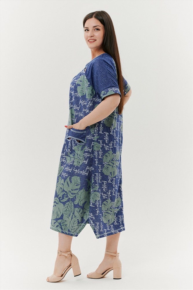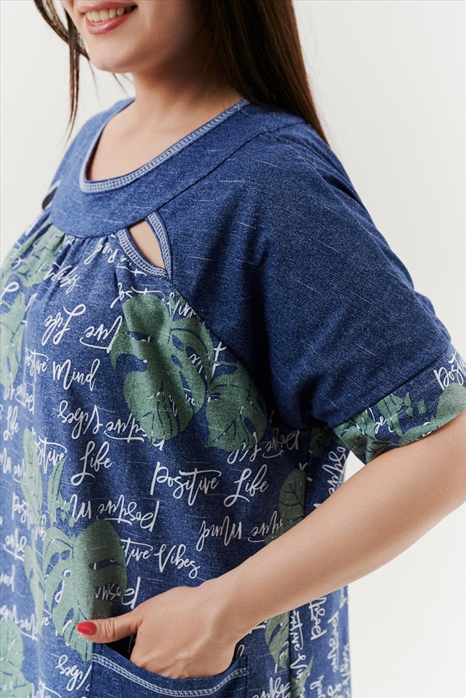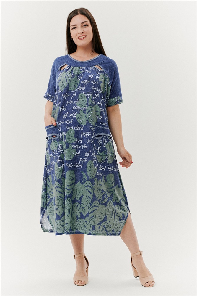 Состав: хлопок 100% Модель: Платье 9136 Тип товара: платье Материал: кулирка | кулирка Бренд: Натали Суслова Карман: боковые Назначение: для дома Отделка: с карманами Рейтинг: Рейтинг 4 и выше Рисунок: надпись | цветы Сезонность: лето Силуэт: оверсайз | свободный Стиль: бохо | домашний Воротник: без воротника Застежка: без застежки Платье женское, расширенное к низу. Рукав реглан, короткий, на манжете. По горловине - обтачки, в шве притачивания рукава к полочке в области обтачки, разрез в форме листка. На полочке накладные карманы, с обтачкой и разрезами. Боковые швы внизу платья срезаны под углом. Таблица размеров и веса