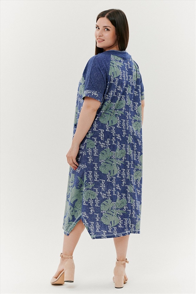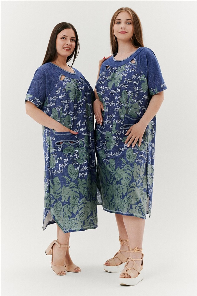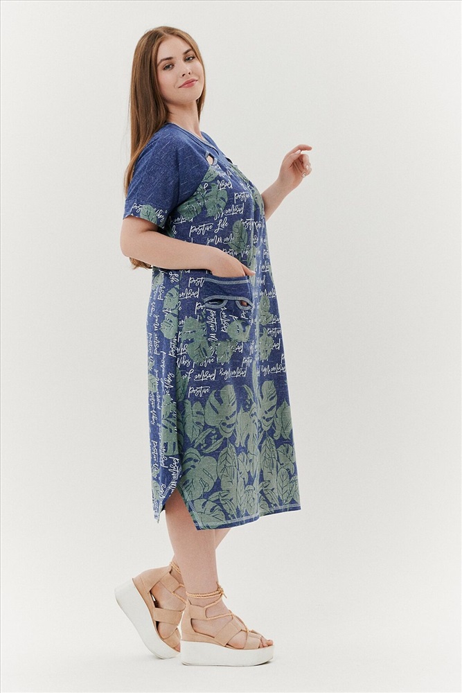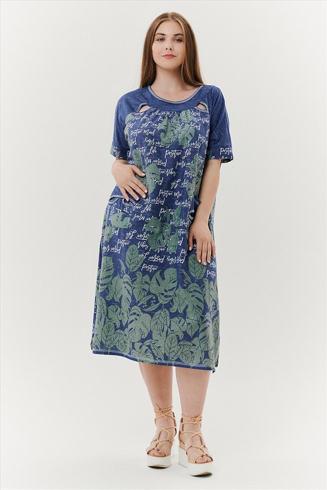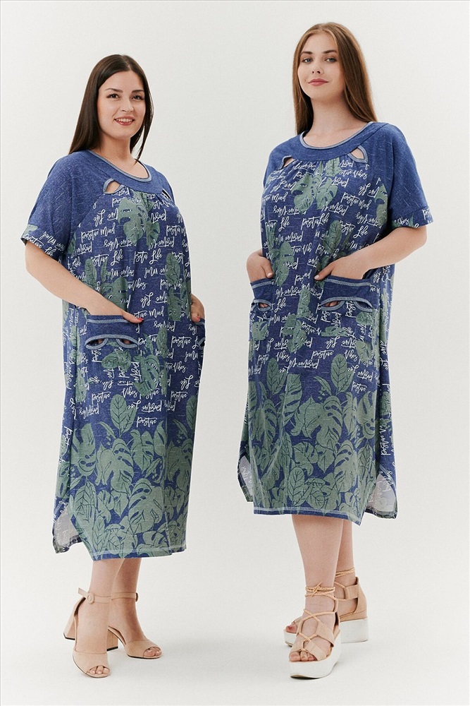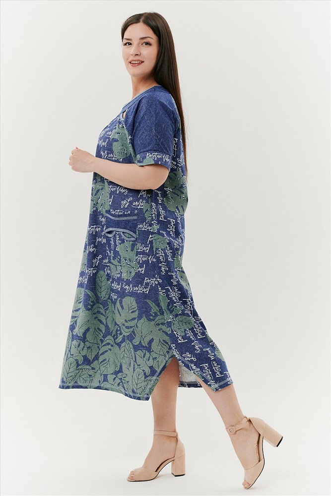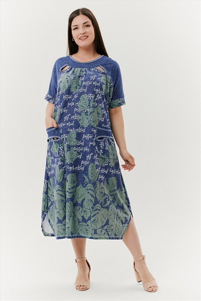 ID товара: 791429 Состав: Хлопок 100% Сезон: Весна/Лето Длина: Ниже колена Фасон: Трапеция Рукав: Короткие Вырез горловины: Округлый Рисунок: растительный Тип карманов: Накладные Декоративные элементы: Разрезы Основная ткань: Хлопок | Кулирка Стиль: Повседневный Страна бренда: Россия Страна производства: Россия Платье женское, расширенное к низу. Рукав реглан, короткий, на манжете. По горловине - обтачки, в шве притачивания рукава к полочке в области обтачки, разрез в форме листка. На полочке накладные карманы, с обтачкой и разрезами. Боковые швы внизу платья срезаны под углом. Комментарии к товару