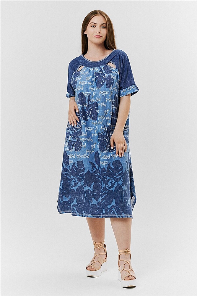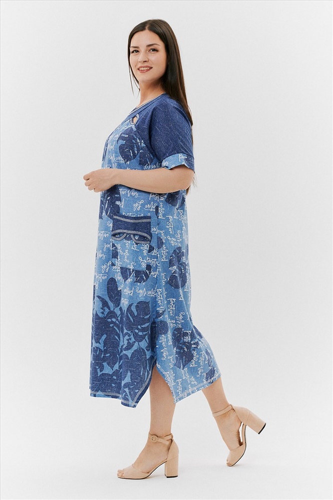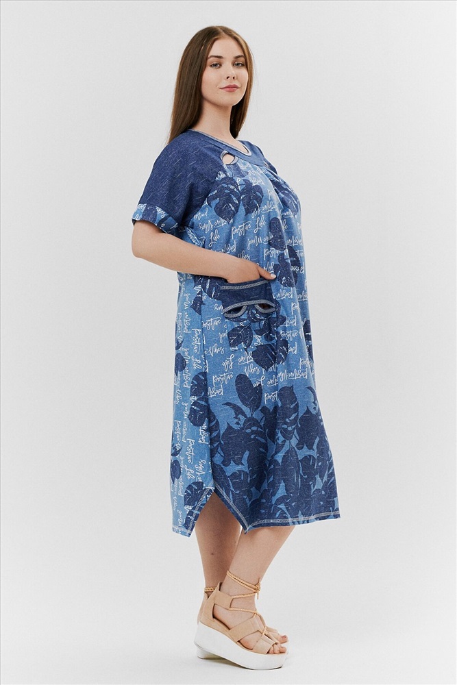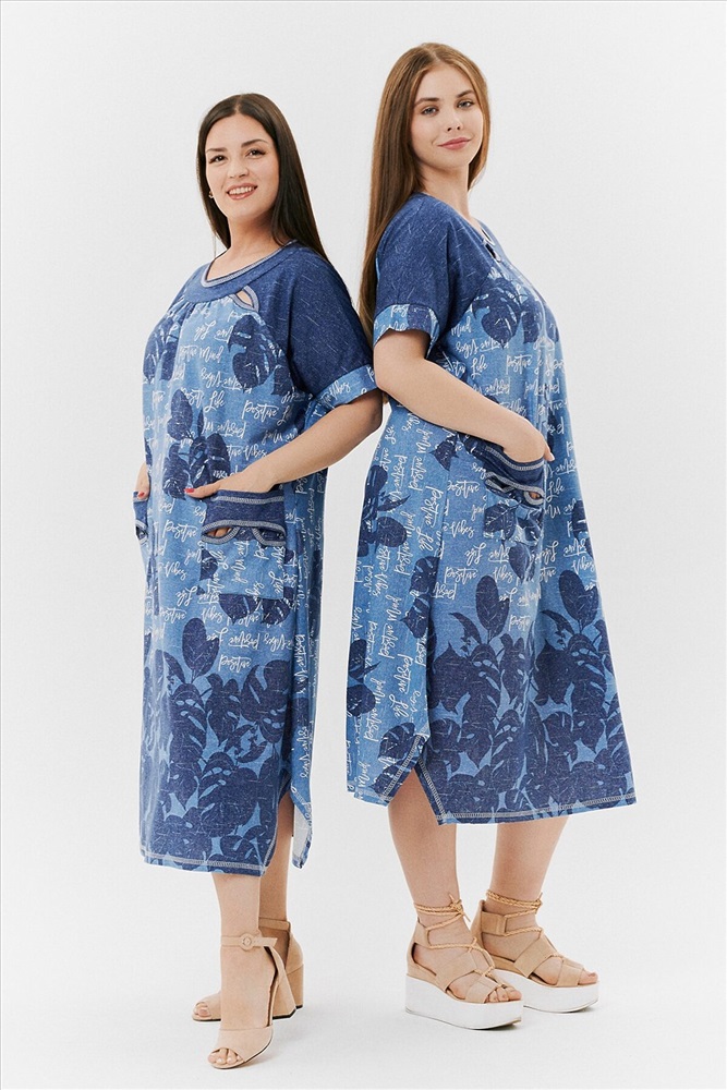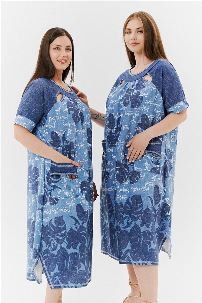 ID товара: 791431 Состав: Хлопок 100% Сезон: Весна/Лето Длина: Ниже колена Фасон: Трапеция Рукав: Короткие Вырез горловины: Округлый Рисунок: растительный Тип карманов: Накладные Декоративные элементы: Разрезы Основная ткань: Хлопок | Кулирка Стиль: Повседневный Страна бренда: Россия Страна производства: Россия Платье женское, расширенное к низу. Рукав реглан, короткий, на манжете. По горловине - обтачки, в шве притачивания рукава к полочке в области обтачки, разрез в форме листка. На полочке накладные карманы, с обтачкой и разрезами. Боковые швы внизу платья срезаны под углом. Комментарии к товару