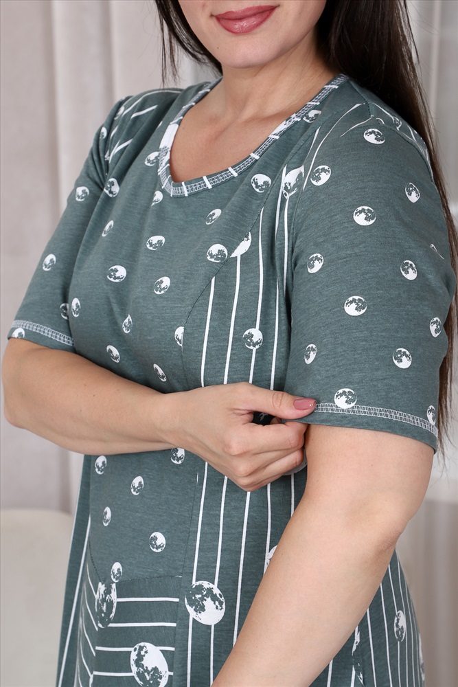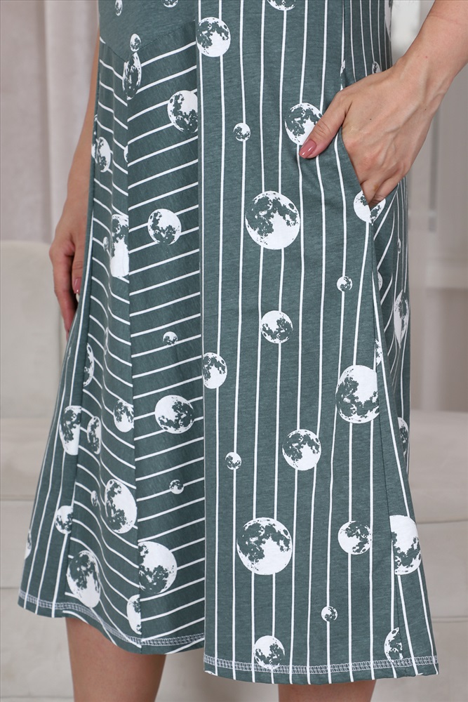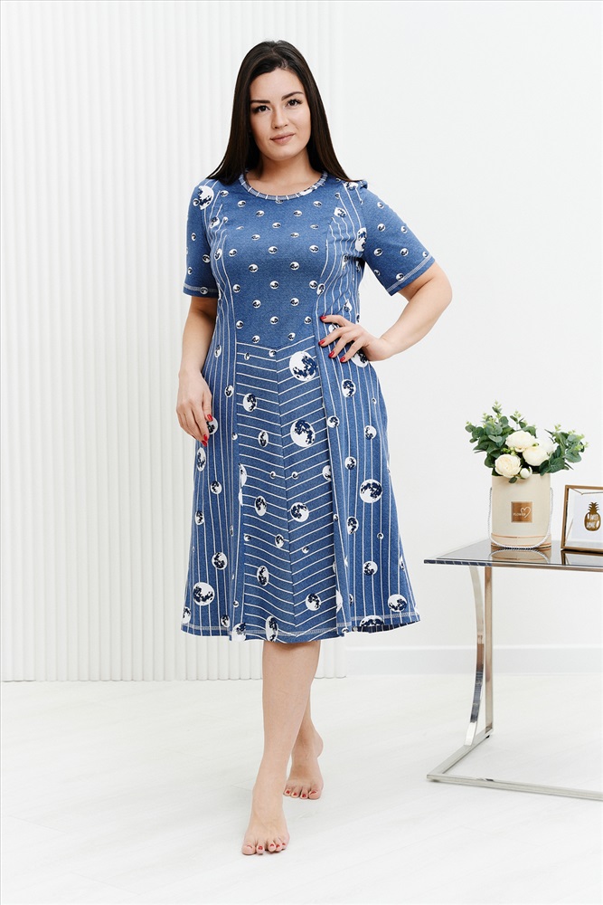 Состав: хлопок 100% Модель: Платье 9141 Тип товара: платье Материал: кулирка | кулирка Бренд: Натали Суслова Длина: длинный Карман: боковые Назначение: для дачи | для дома НДС: 22% Отделка: с карманами Рейтинг: Рейтинг 4 и выше Рисунок: горошек | полоска Рукав: короткий рукав Сезонность: лето Силуэт: полуприлегающий Стиль: домашний | повседневный Воротник: без воротника Застежка: без застежки Платье женское полуприлегающего силуэта, расширенное к низу. Рукав втачной короткий. В боковых швах внутренние карманы. Полочка и спинка состоит из нескольких частей, из тканей - компаньонов. Таблица размеров и веса