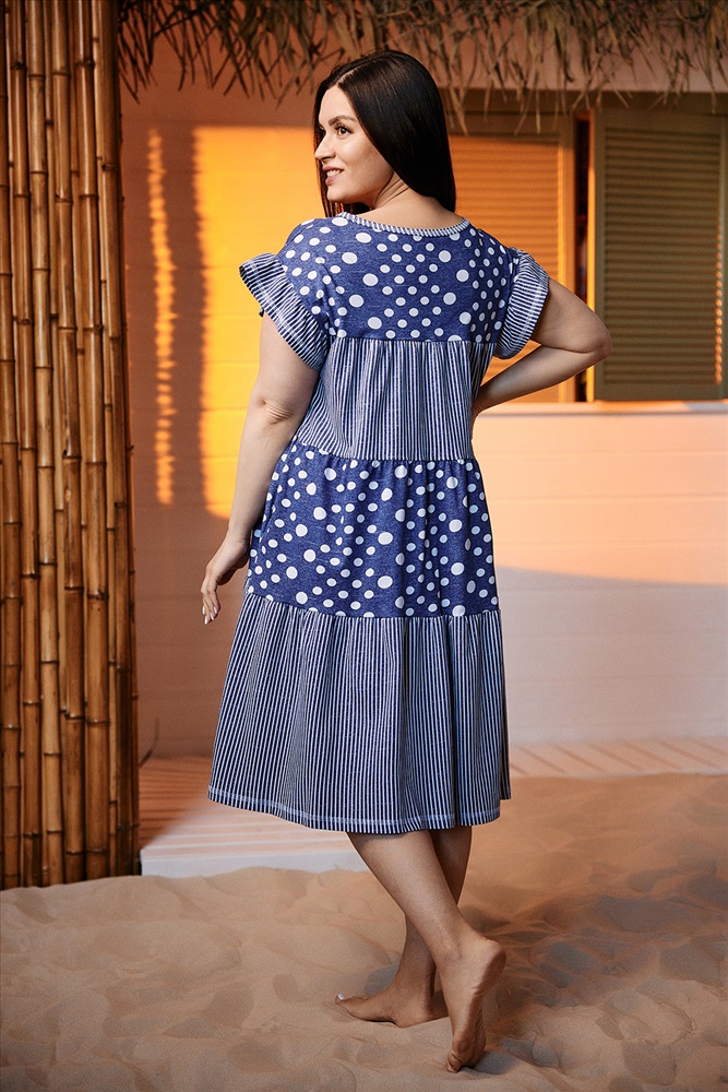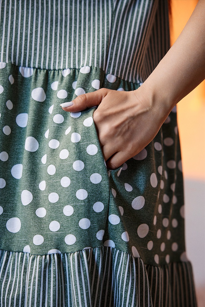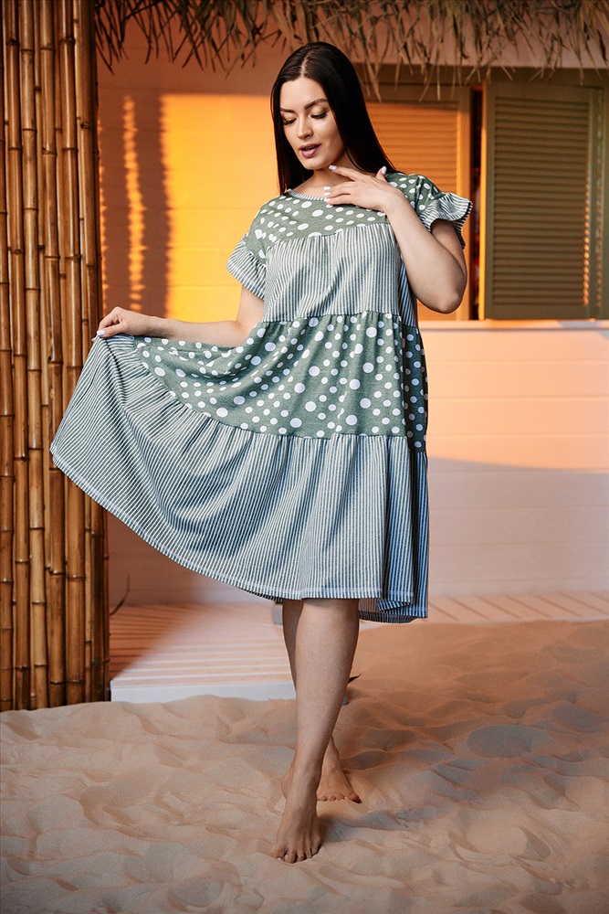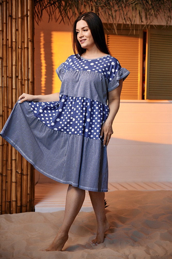 Состав: хлопок 100% Модель: Платье 9200 Тип товара: платье Материал: кулирка | кулирка Бренд: Натали Суслова Длина: средняя длина Карман: боковые Назначение: для дачи | для дома Отделка: с карманами | с воланами Рисунок: горошек | полоска Рукав: короткий рукав Сезонность: лето Силуэт: свободный Стиль: домашний | повседневный Воротник: без воротника Застежка: без застежки Платье женское, свободное, к низу расширенное за счет сборки каждого из трех ярусов. Рукав цельнокроеный короткий, внизу рукава рюша. Вырез горловины округлый. Эта модель платья очень комфортна для любого типа женской фигуры, а сочетание ткани в горошек и полоску придает изделию особую привлекательность. Таблица размеров и веса