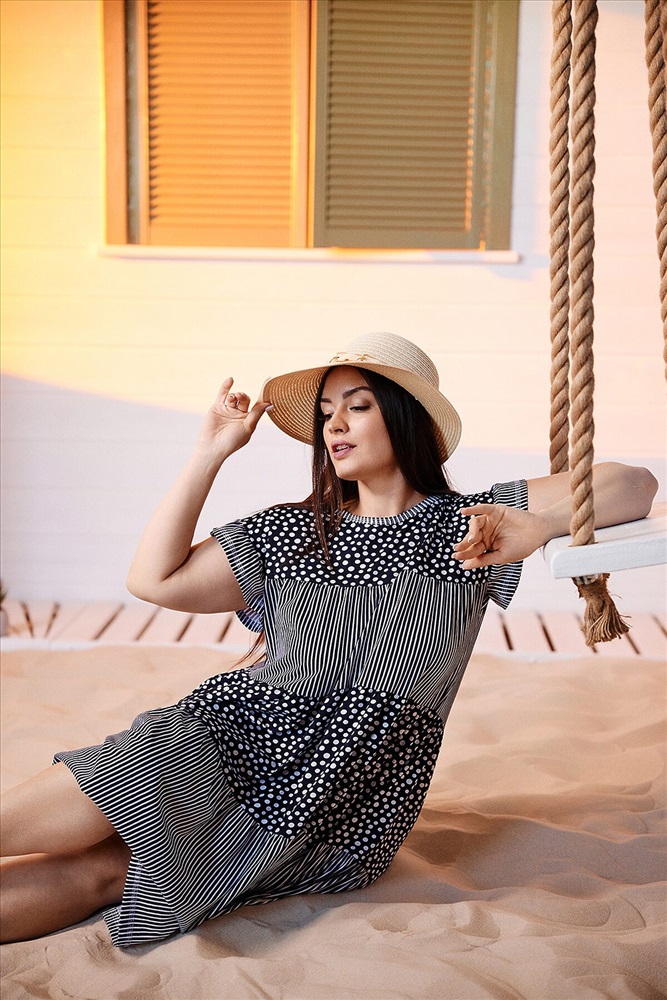 ID товара: 891557 Состав: Хлопок 100% Сезон: Весна/Лето Длина: Ниже колена Фасон: Свободный крой Рукав: короткие Вырез горловины: Округлый Рисунок: Полоски Тип карманов: В шве Декоративные элементы: Принт Основная ткань: Хлопок Стиль: повседневный Вид ткани: Кулирка Страна бренда: Россия Страна производства: Россия Платье женское, свободное, к низу расширенное за счет сборки каждого из трех ярусов. Рукав цельнокроеный короткий, внизу рукава рюша. Вырез горловины округлый. Эта модель платья очень комфортна для любого типа женской фигуры, а сочетание ткани в горошек и полоску придает изделию особую привлекательность. Комментарии к товару