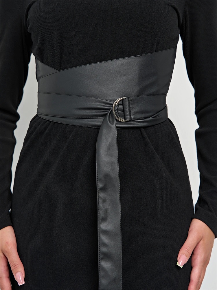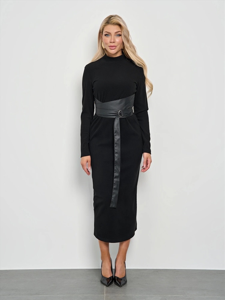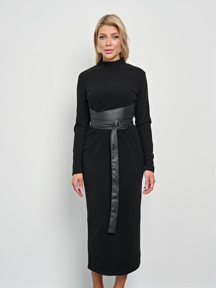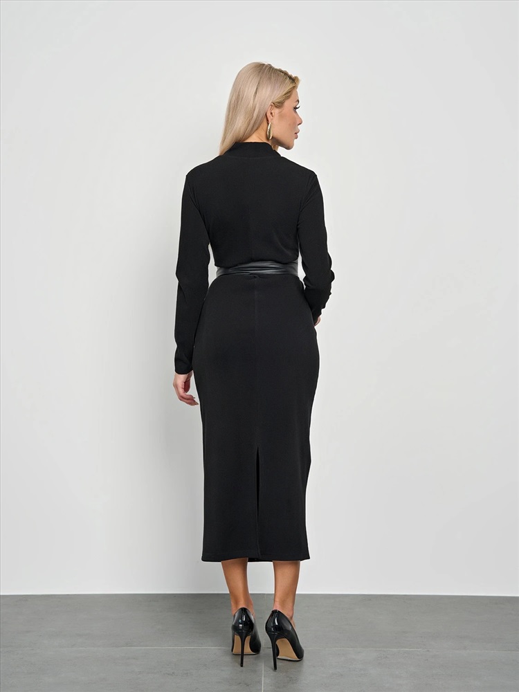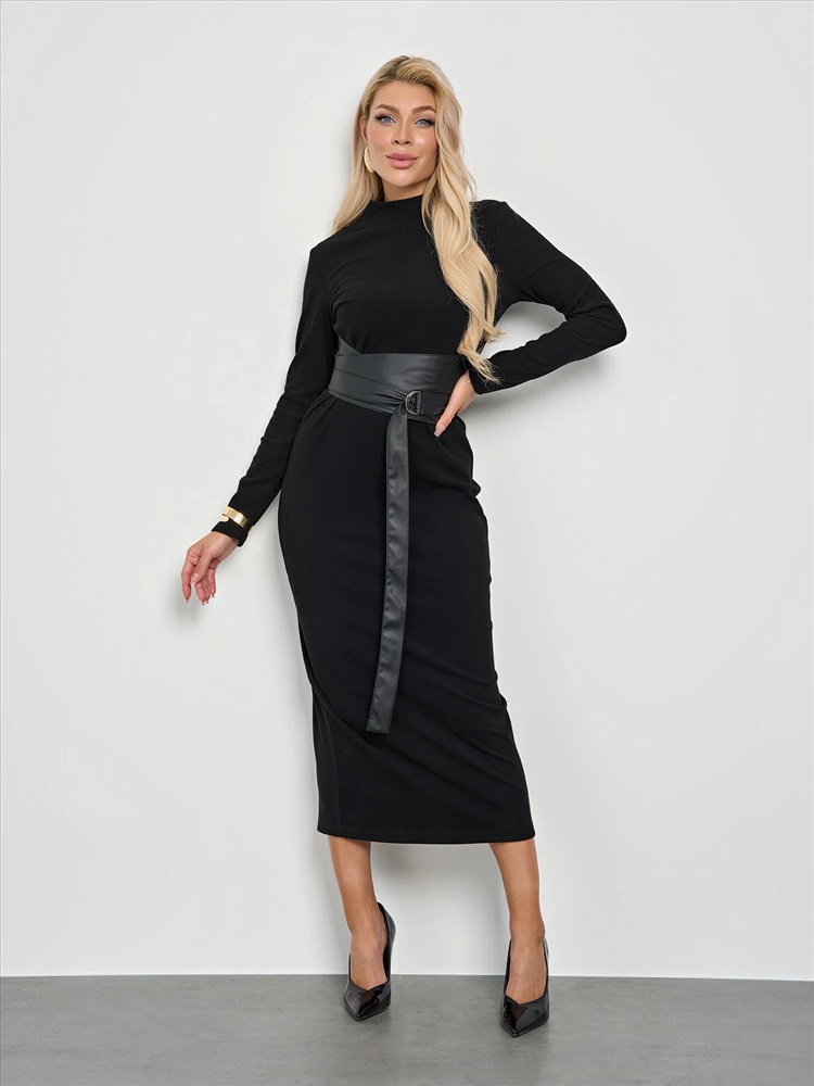 Длинные втачные рукава. Воротник-стойка. Спинка изделия со средним швом и шлицей сзади. Пояс из искусственной кожи с пряжкой-полукольцом вшит в боковые швы изделия. Комментарии к товару