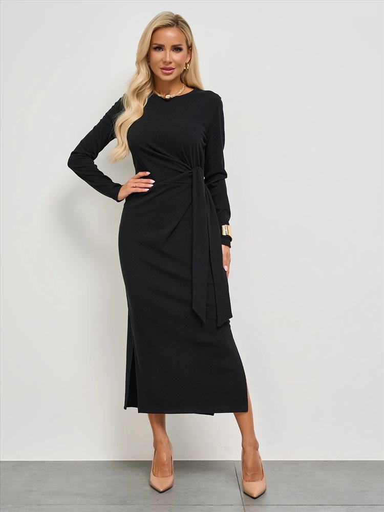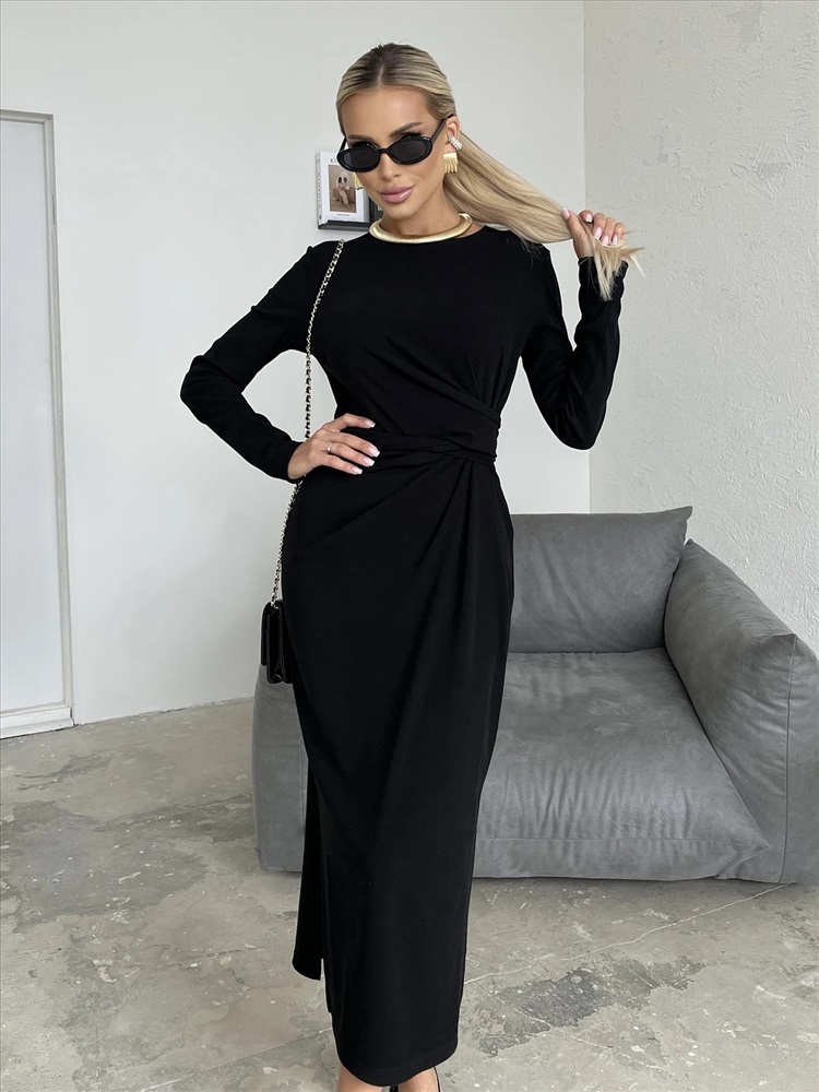 Талия декорирована вшивным поясом из основной ткани.