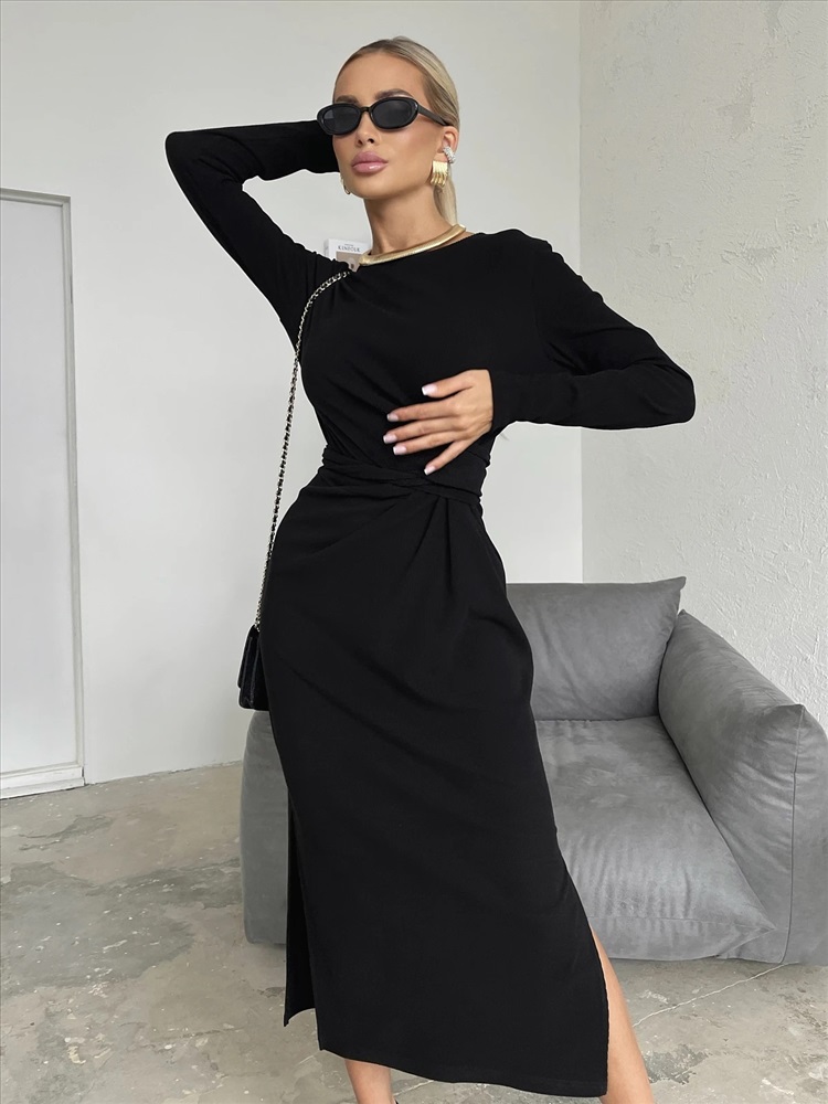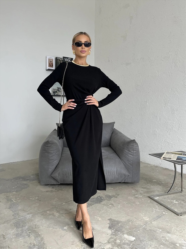 Трикотажное платье прилегающего силуэта длины миди.