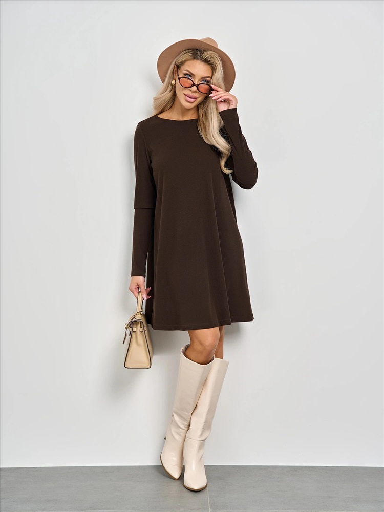 Изделие прилегающее по груди и расклешенное в нижней части.