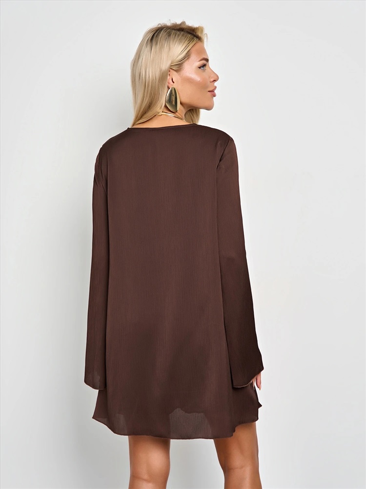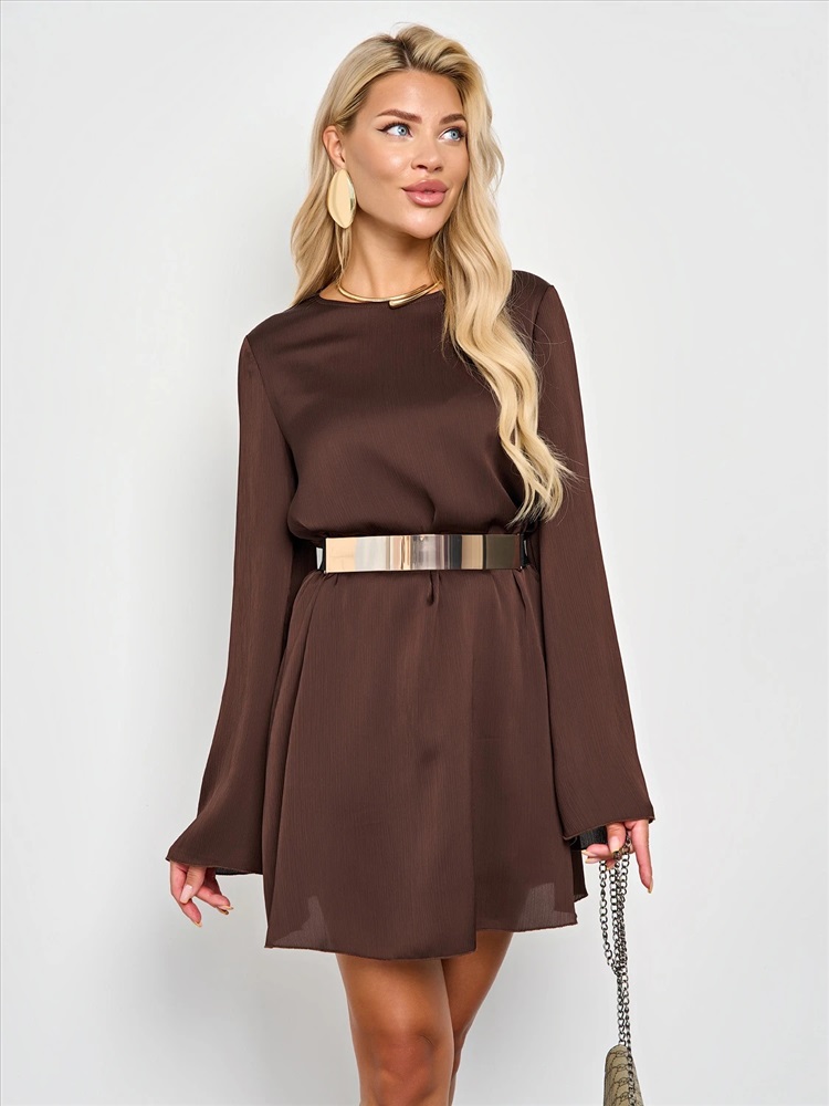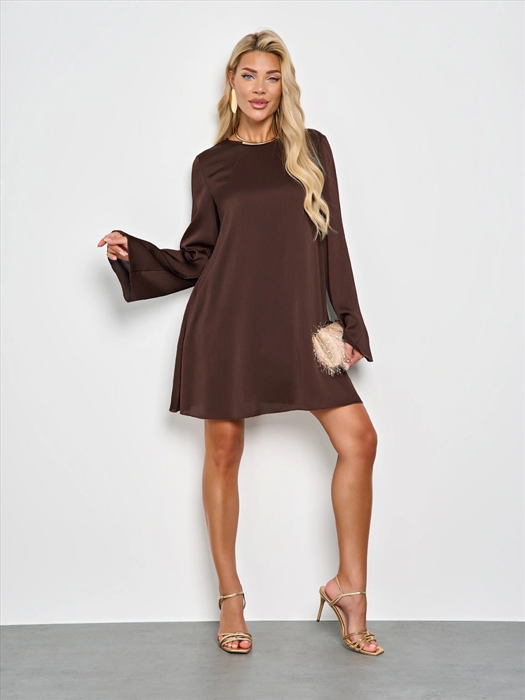 Изделие прилегающее по груди и расклешенное в нижней части.