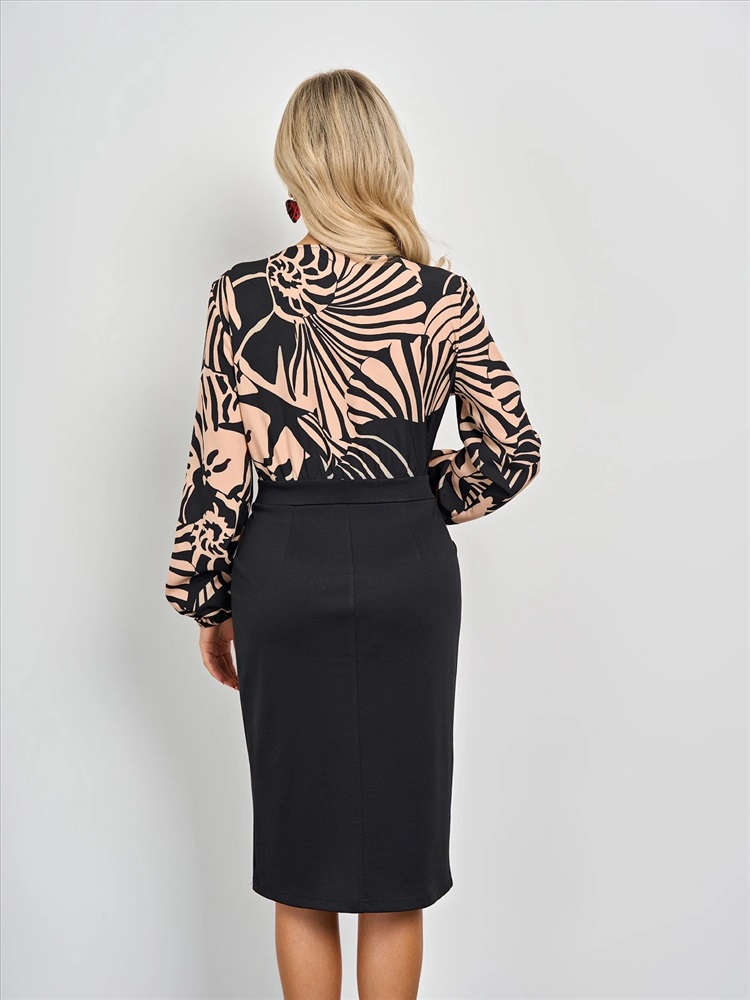 Верх изделия выполнен из плательной ткани, низ из эластичного трикотажа.