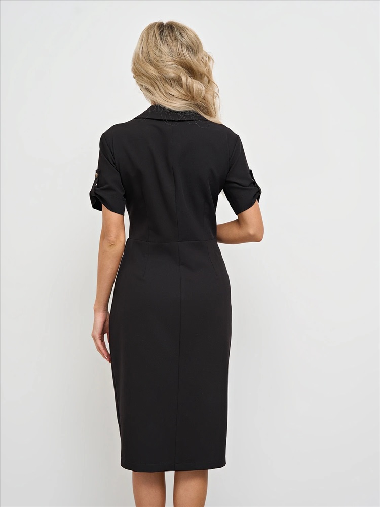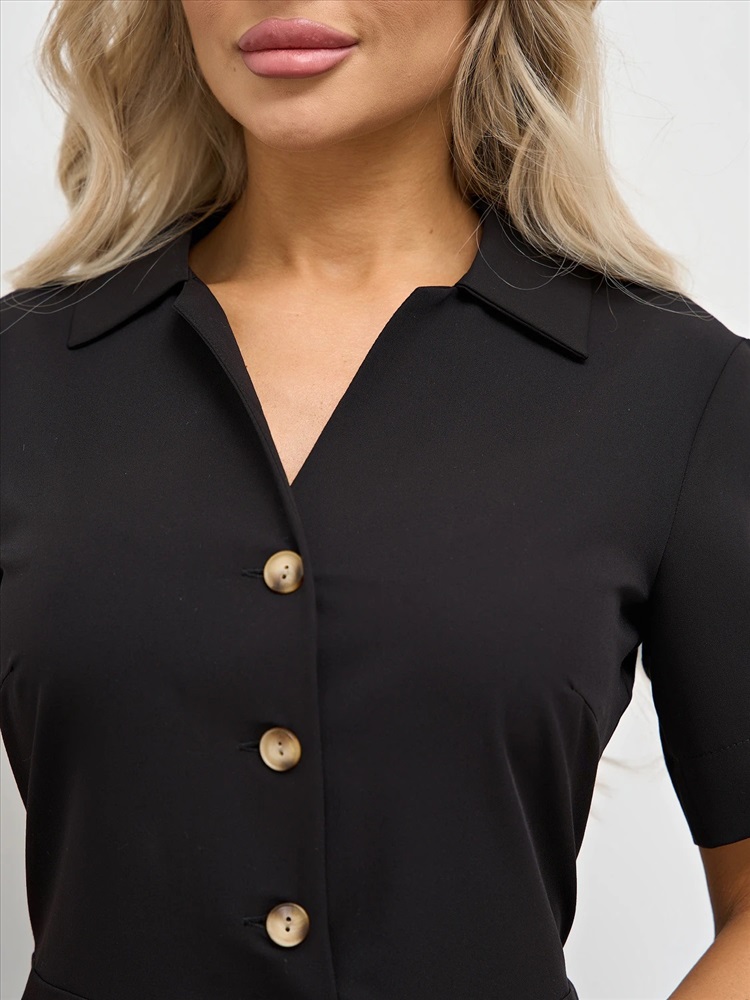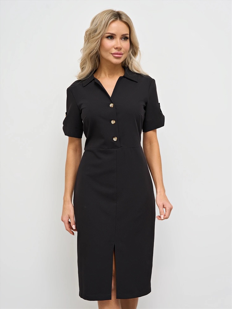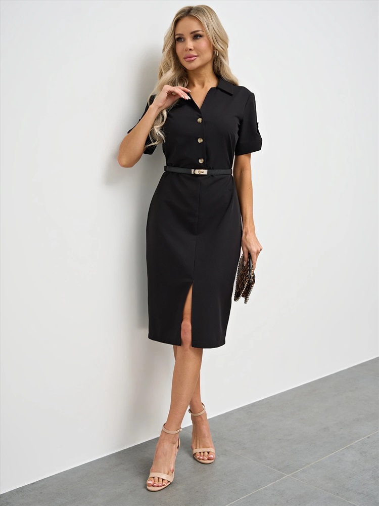 Отрезное по линии талии. Рубашечный воротник. Втачные рукава. Верх платья застегивается на пуговицы. Спинка изделия со средним швом. Ремень не идет в комплекте. Комментарии к товару