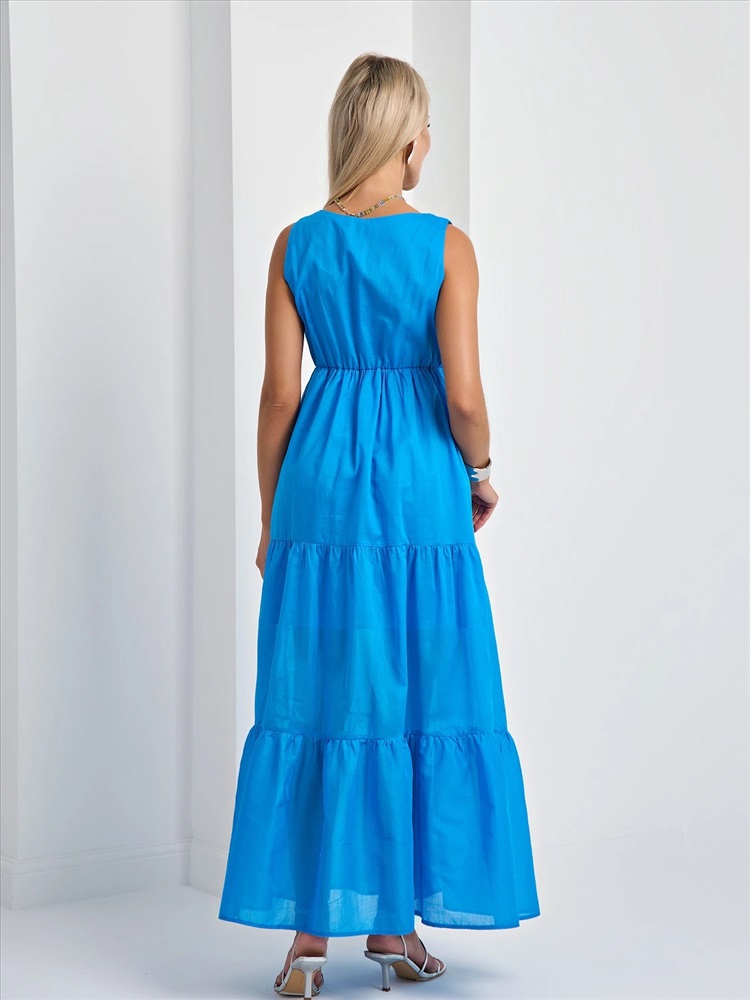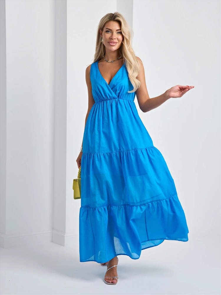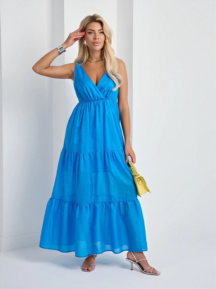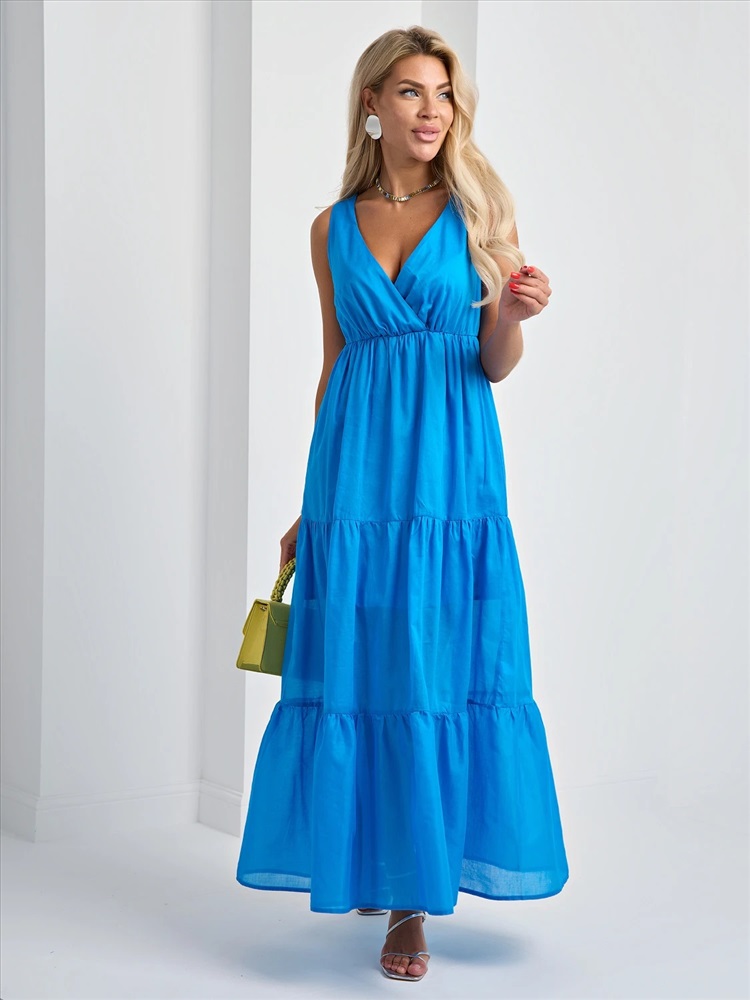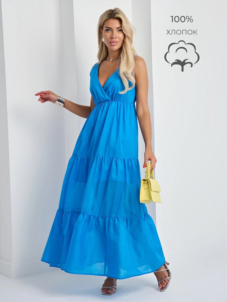 Легкое платье с расклешенной ярусной юбкой.