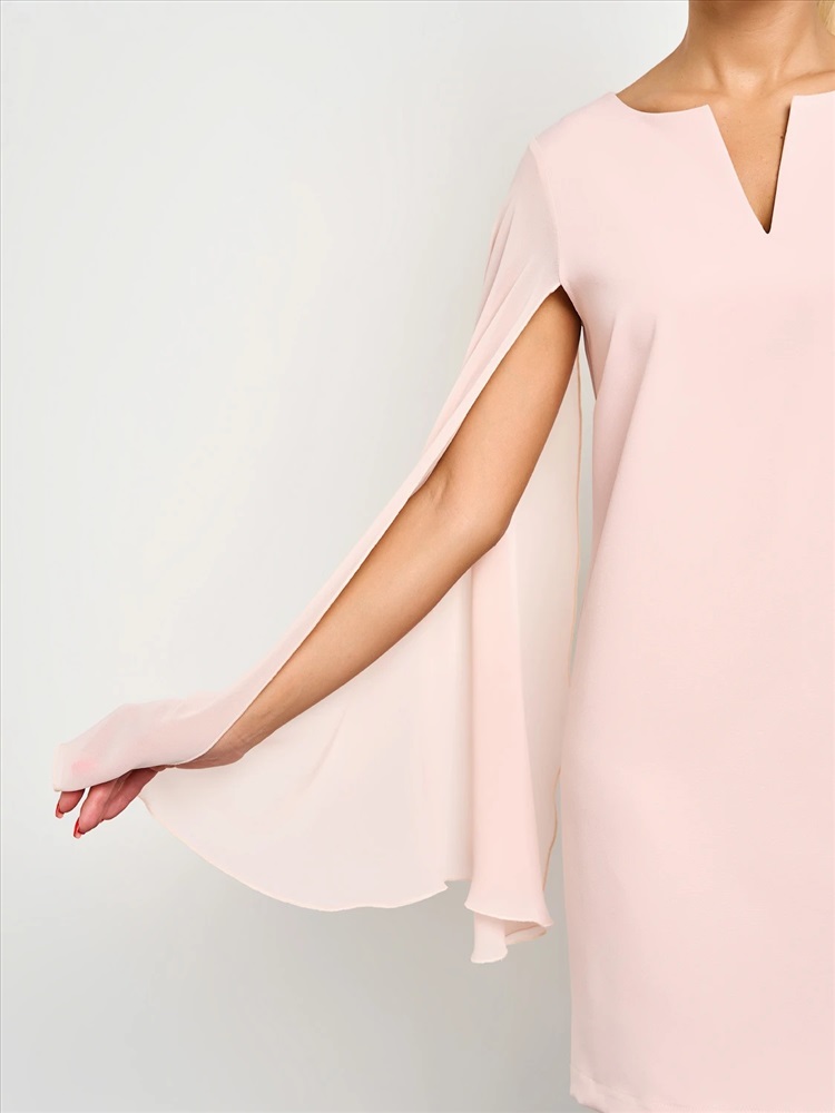 Длинные летящие рукава из шифона втачные сверху, расклешенные к низу.