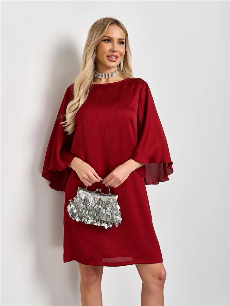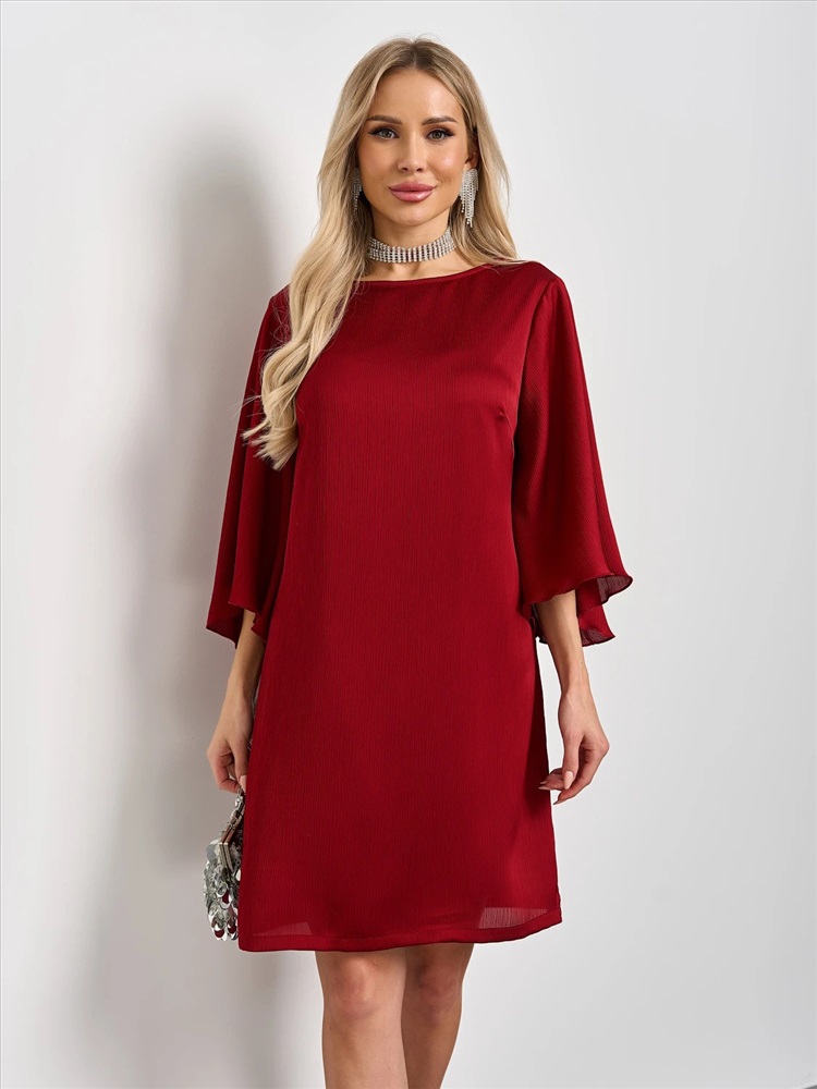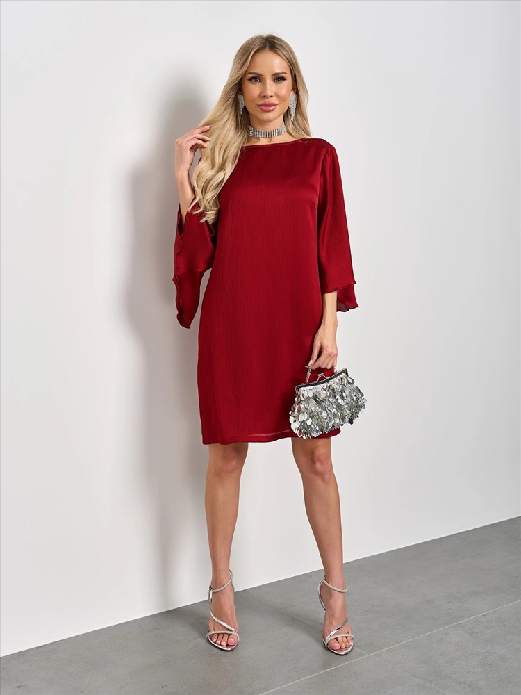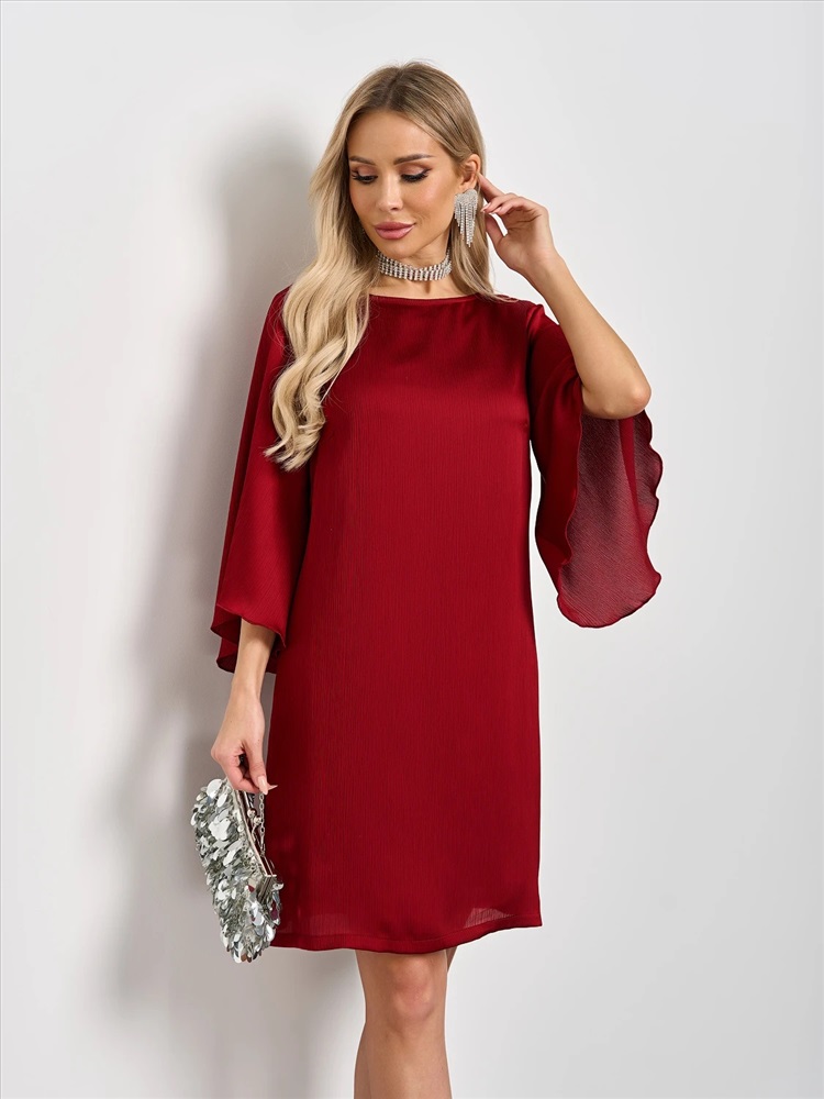 Стильное платье прямого силуэта из жатого шифона с подкладом в насышенном винном оттенке.