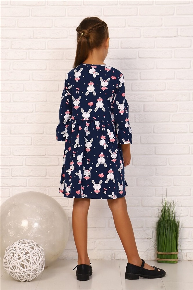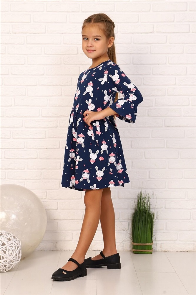 ID товара: 881162 Состав: 92% Хлопок, 8% Лайкра Сезон: Демисезон Длина: До колена Фасон: Расклешенное Рукав: 3/4 Вырез горловины: Округлый Рисунок: Фантазийный Декоративные элементы: Принт Основная ткань: Кулирка с лайкрой Стиль: повседневный Страна бренда: Россия Страна производства: Россия Платье для девочек дошкольного и младшего школьного возраста, из трикотажного полотна кулирка с лайкрой с рисунком. Силуэт прилегающий, отрезное и расклешенное от линии талии, рукав 3/4 втачной одношовный. По низу рукава широкий волан, выполненный из основного материала. Срез горловины окантован. Комментарии к товару