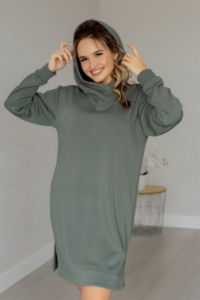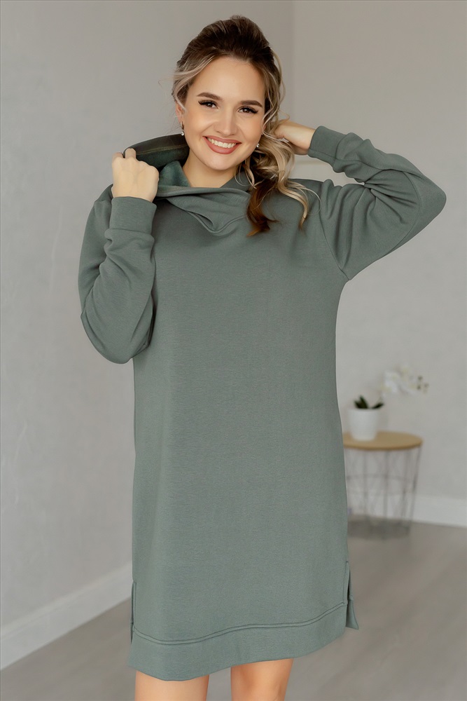 Застежка: без застежки Платье-толстовка свободного силуэта со спущенным плечом и объемным капюшоном в городском стиле. Женское теплое спортивное платье на каждый день, выполнено из трикотажного полотна с мягким внутренним слоем. По бокам платья эффектные разрезы, которые подчеркнут Вашу женственность. Платье изготовлено из теплой и приятной к телу ткани, позволит сохранить тепло в холодные дни. Удобный свободный крой оверсайз подарит вам свободу движений и комфорт. Платье теплое женское повседневное подходит для дам с пышными формами, для беременных женщин, для высоких и низких девушек. Идеальный вариант для отдыха и работы. Платье представлено большим размерным рядом. Порадуйте покупкой себя и своих близких.