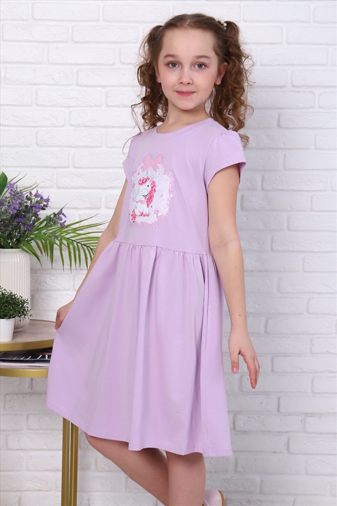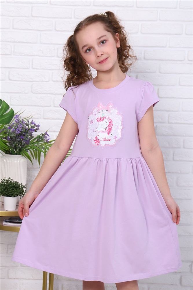 Это красивое и яркое платье для девочки обязательно оценят маленькие модницы. Модель декорирована нашивкой с пайетками, которые меняют цвет одним движением руки и создают веселое настроение. Идеально подходит для повседневной носки дома и в детский сад, также для летних прогулок, для похода в гости или на праздник. Данная модель сшита из качественного трикотажа. Для сохранения первоначальных свойств изделия, важно соблюдать рекомендации по уходу.