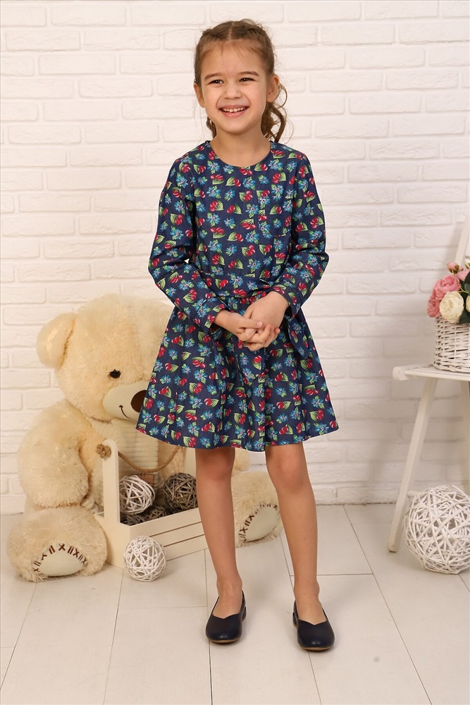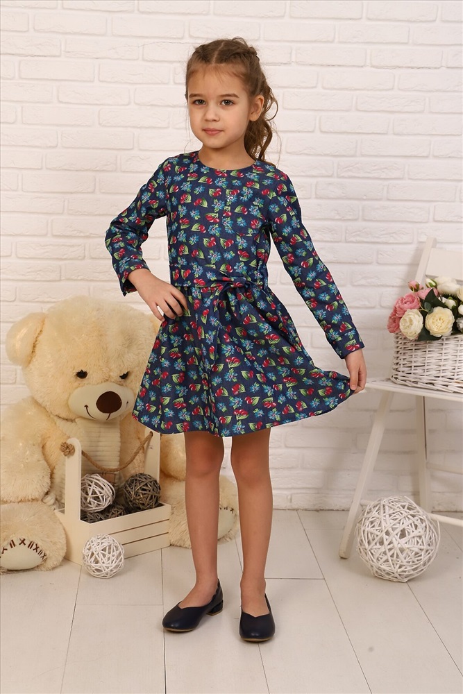 Страна производства: Россия Сарафан для девочек дошкольного и младшего школьного возраста, из основного материала - ткани микровельвет. Сарафан трапециевидного силуэта, с воланом по низу, с рукавом типа крылышко, с центральной застежкой по спинке на 2 кнопки. Спинка с отрезной кокеткой. Крылышко присобрано по верхнему срезу, по низу - подогнуто. Горловина и проймы подогнуты. По горловине и проймам проложена отделочная строчка. По переду и спинке проложена отделочная строчка от шва притачивания воланов. На передней части вышит рисунок с аппликацией.