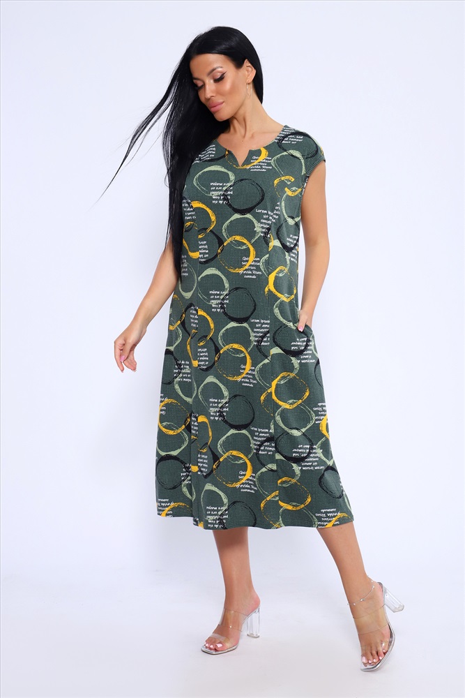 Состав: 100 % хлопок Модель: Платье Энсо ПЛ-002 Тип товара: платье Материал: кулирка | кулирка Бренд: LifeFirefly Карман: боковые Назначение: для дома НДС: 22% Отделка: с карманами Рисунок: геометрия Рукав: короткий рукав Сезонность: лето | осень | весна | зима Силуэт: свободный Стиль: домашний | повседневный Воротник: без воротника Застежка: без застежки Лёгкое и удобное платье из 100% хлопка идеальный выбор для тех, кто ценит комфорт и стиль. Благодаря идеальным лекалам, это платье прекрасно сидит на любой фигуре, позволяя вам наслаждаться ощущением спокойствия и уюта после рабочего дня или посвятить себя повседневным заботам по дому. Платье доступно в больших размерах, что делает его подходящим для широкого круга женщин. Модная контрастная расцветка с кругами придаёт ему особый шарм. Горловина имеет круглую форму с декоративной капелькой в виде буквы V, что добавляет изюминку в общий образ. Платье имеет спущенную пройму и карманы в боковых швах, что делает его не только стильным, но и практичным. Таблица размеров и веса