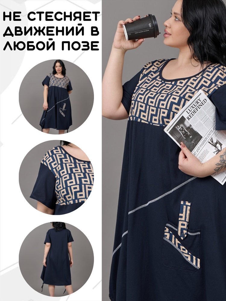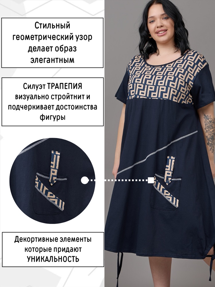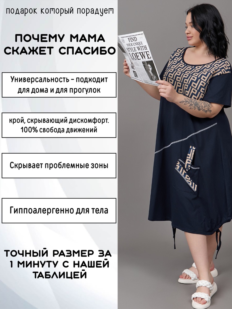 Состав: Хлопок 100% Модель: Платье ГИГАНТ домашнее больших размеров П-02 орнамент Тип товара: платье Материал: кулирка | кулирка Бренд: ВРазмере Длина: средняя длина Карман: накладные Назначение: для дома НДС: 5% Отделка: с карманами | со шнурком | со складками Рисунок: гусиная лапка Рукав: короткий рукав Сезонность: лето | осень | весна | зима Силуэт: расклешенный | свободный Стиль: домашний | нарядный | повседневный Воротник: без воротника Застежка: без застежки Представляем вам уютное домашнее платье больших размеров созданное для комфорта и стиля в каждый день. Это хлопковое платье свободного кроя с расклешенной юбкой миди идеально подойдет для женщин plus size, обеспечивая свободу движений и ощущение легкости. Черный цвет с классическим рисунком гусиная лапка придает ему элегантный вид, а округлый вырез горловины и рукава 3/4 добавляют женственности. Наличие накладных карманов - практичный бонус для хранения мелочей. Свободный покрой и мягкий ивановский трикотаж из 100% хлопка подарят вам максимальный комфорт в течение дня. Это платье станет незаменимым спутником для отдыха дома, создавая атмосферу уюта и расслабленности. Таблица размеров и веса