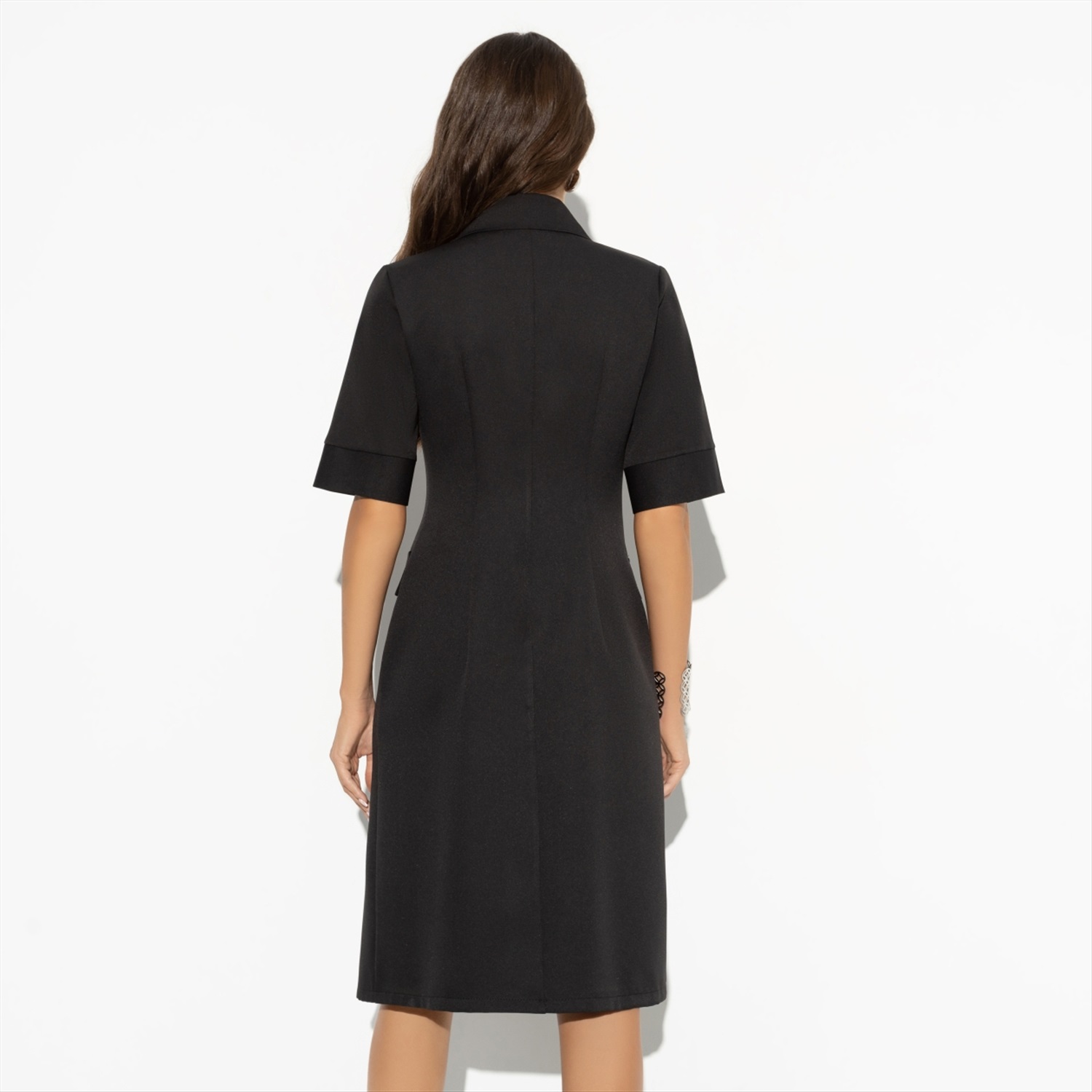 Платье «Грани таланта» из коллекции CHARUTTI — это универсальное решение для женщин, которые хотят выглядеть безупречно как на деловой встрече, так и на вечернем мероприятии. Приталенный силуэт и длина миди делают это платье элегантным и стильным выбором, подчеркивая фигуру и придавая образу утонченность. Цвет «черный» всегда актуален и идеально подходит для создания как классических, так и более современных образов. Имитация карманов добавляет платью стильных деталей, которые привлекают внимание и создают эффект изысканности. Ткань «барби» — это сочетание полиэстера, вискозы и спандекса, обеспечивающее комфорт и долговечность. Благодаря своим эластичным свойствам, платье не мнется и сохраняет форму, что делает его отличным выбором для повседневного ношения. Этот материал также легко стирается, сохраняя насыщенность цвета и структуру ткани даже после множества стирок. Ваши розничные клиенты будут в восторге от такого сочетания качества и функциональности. Приобретая платье «Грани таланта» оптом, вы получаете не просто модный продукт, а настоящий хит для любой коллекции женской одежды. Благодаря универсальности кроя и практичности ткани, платье подойдет для самых разных событий. Это платье станет выгодным предложением для магазинов, так как оно привлекает внимание своей функциональностью и стилем, что делает его востребованным среди женщин любого возраста.