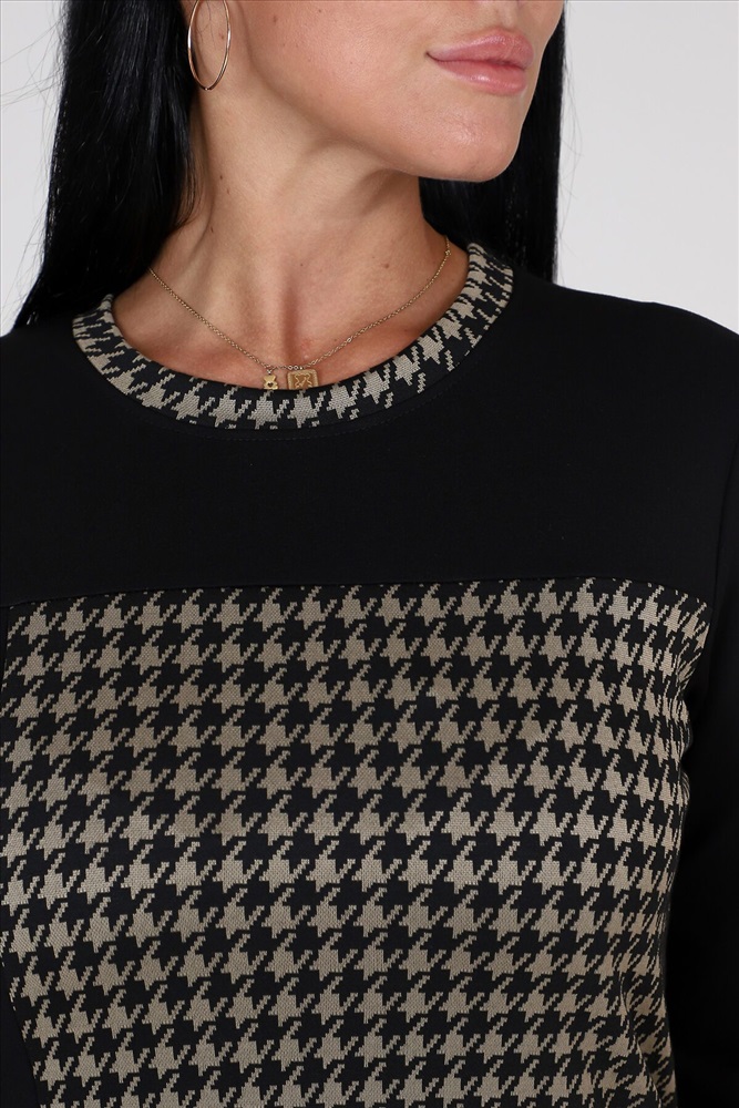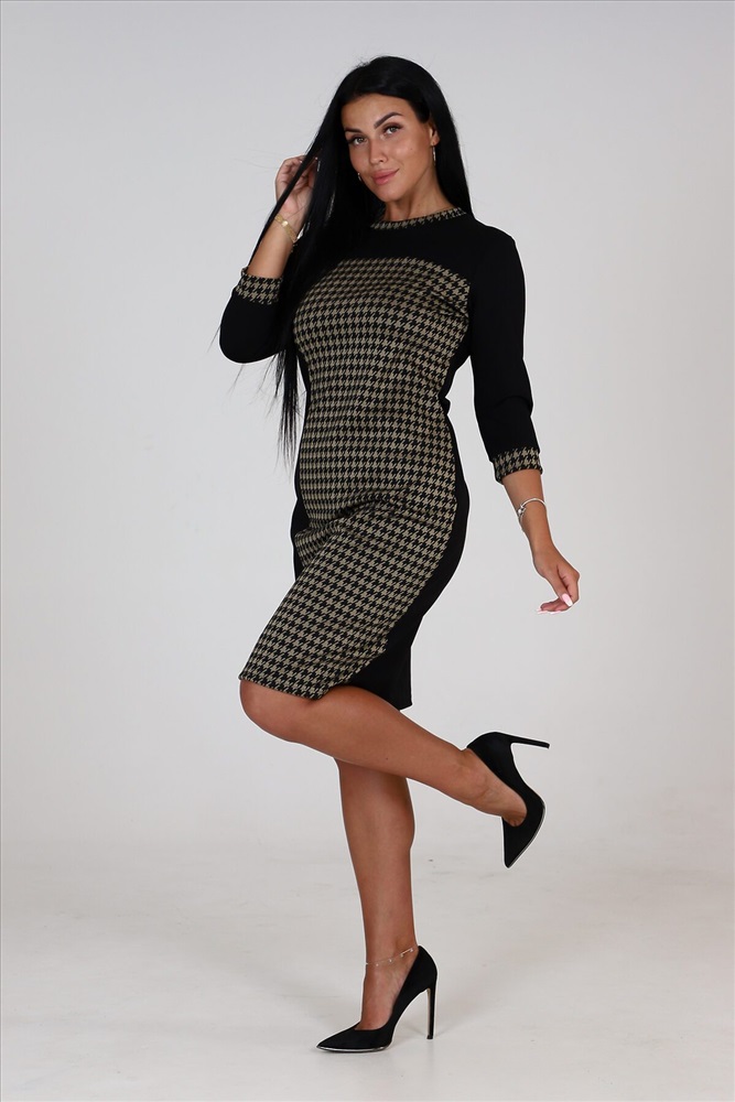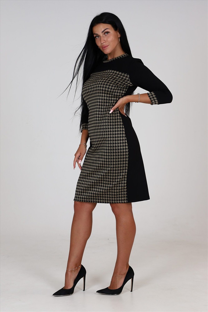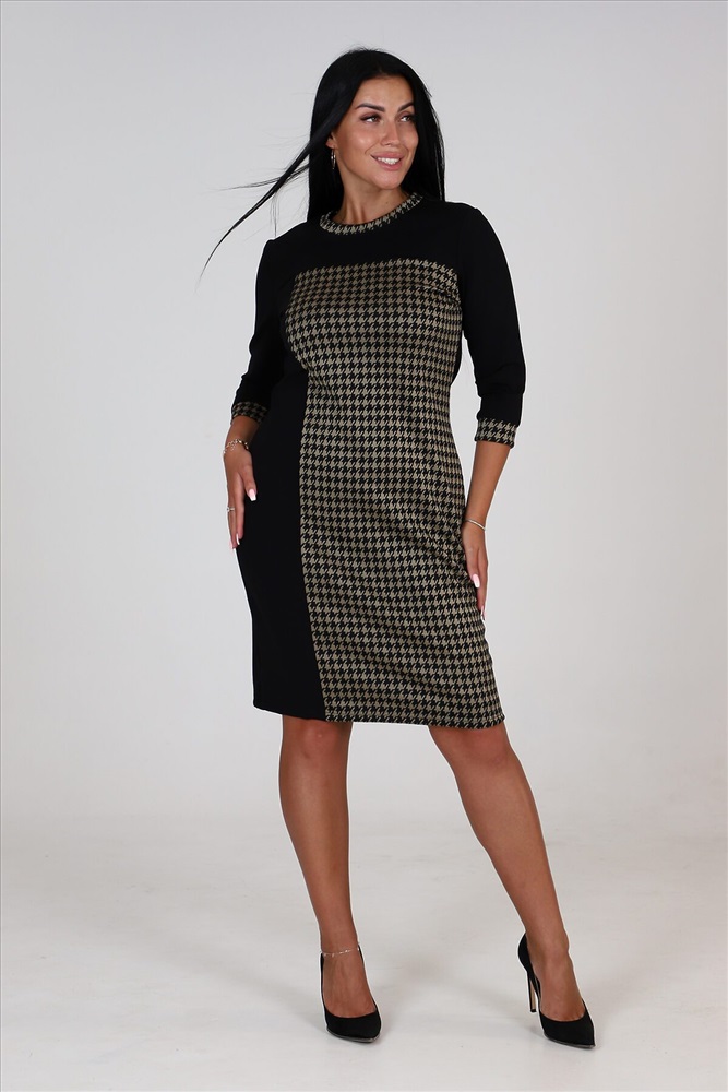 Производитель: НАТАЛИ ID товара: 875685 Состав: Полиэстер - 95%, Эластан - 5% Сезон: Весна/Лето Длина: До колена Фасон: Полуприлегающий Рукав: 3/4 Вырез горловины: Округлый Рисунок: Гусиная лапка Основная ткань: Джерси Стиль: классический Страна бренда: Россия Страна производства: Россия