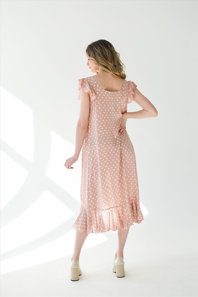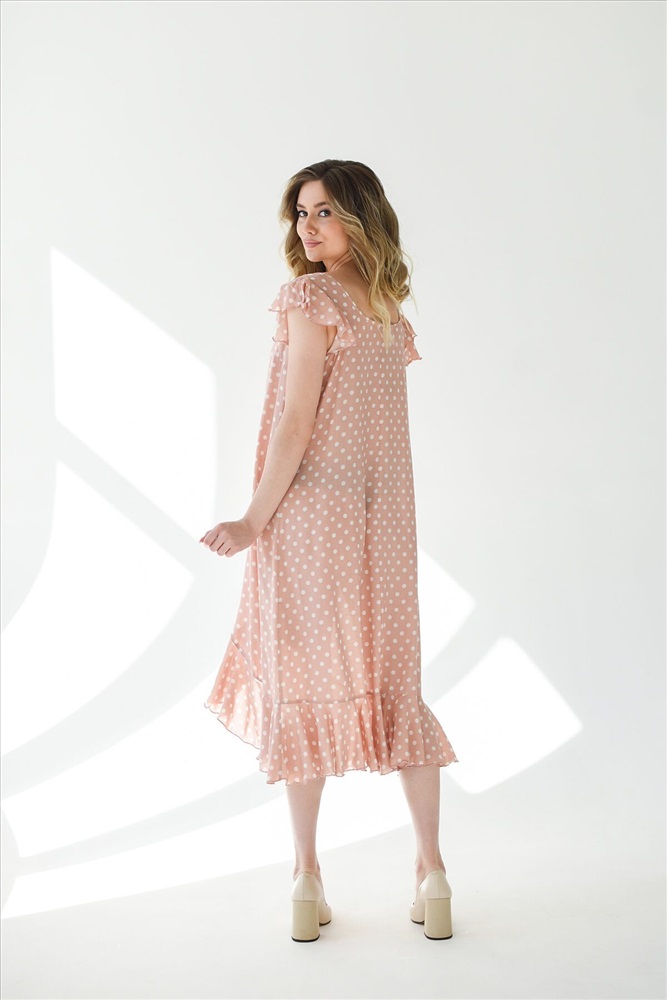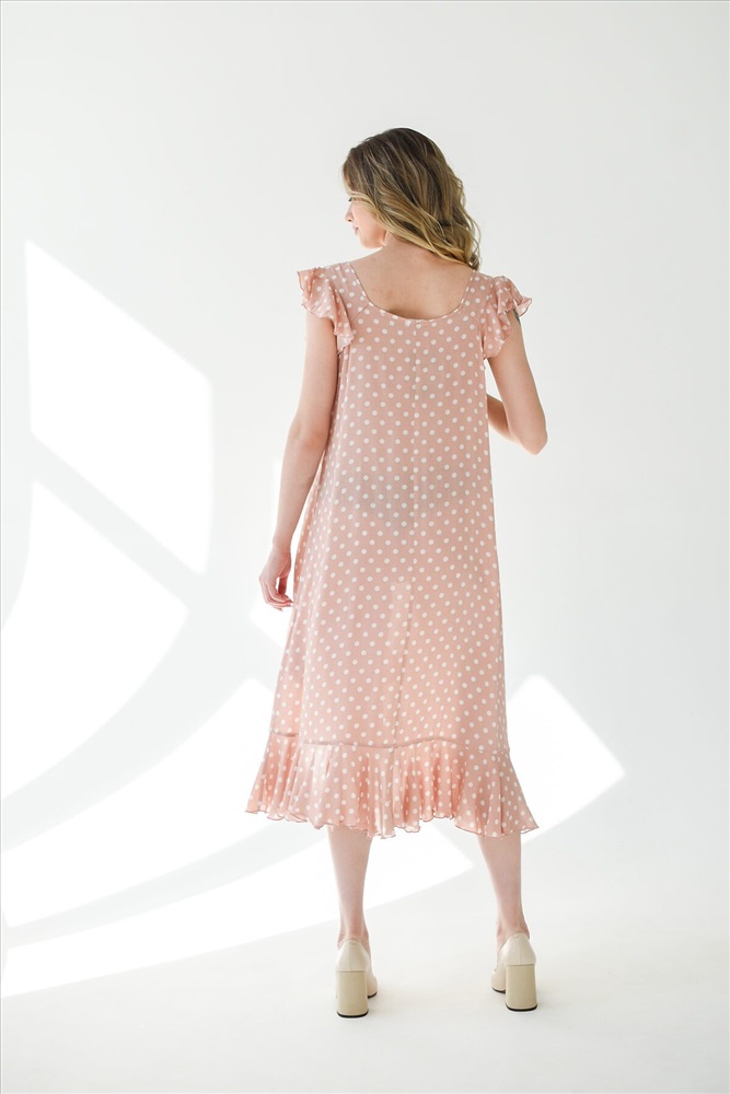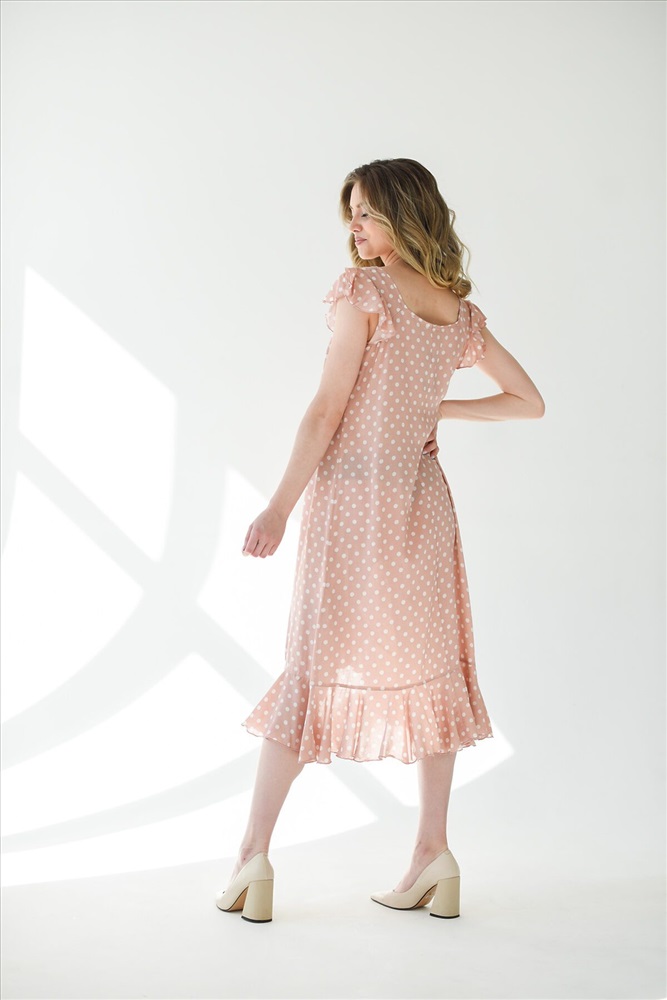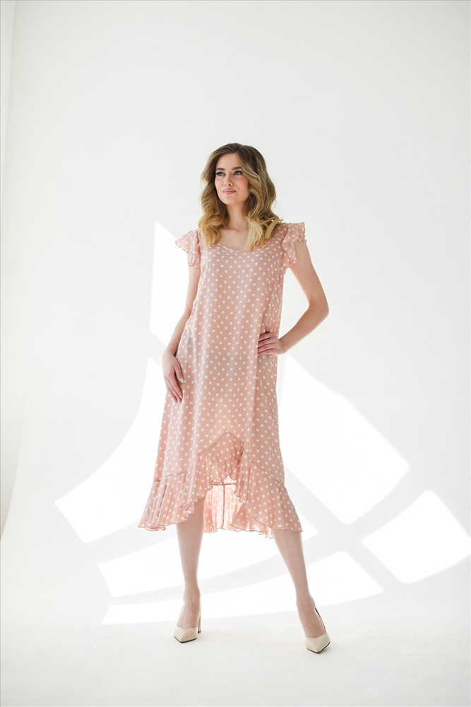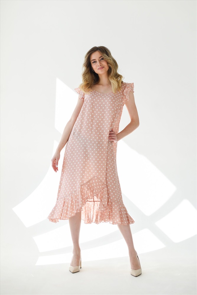ID товара: 884182 Состав: 100% Вискоза Сезон: Весна/Лето Длина: Миди Фасон: Свободный крой Рукав: Короткие Вырез горловины: Округлый Рисунок: Горох Декоративные элементы: Оборка Основная ткань: Вискоза | Штапель Стиль: Романтический Страна бренда: Россия Страна производства: Россия Платье Хлоя их 100% вискозы Комментарии к товару
