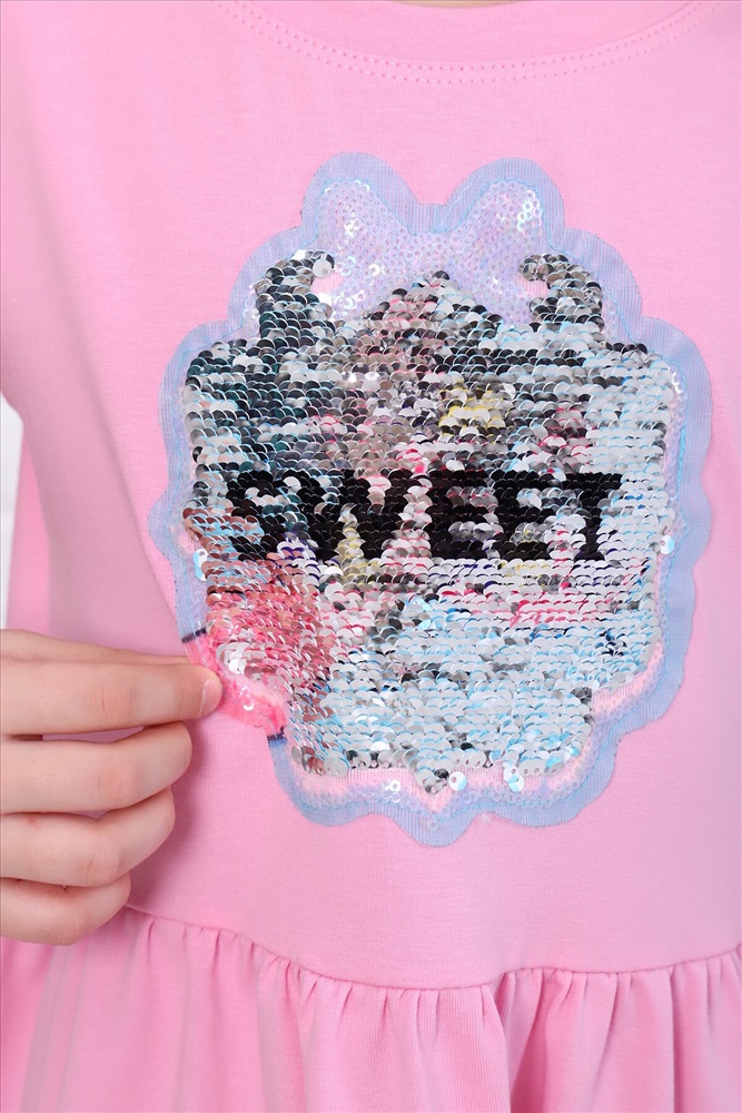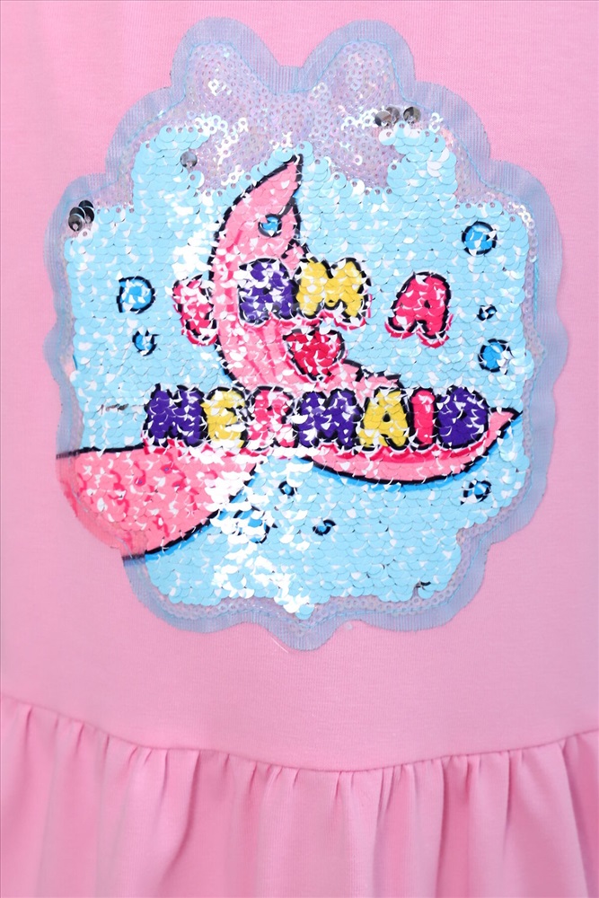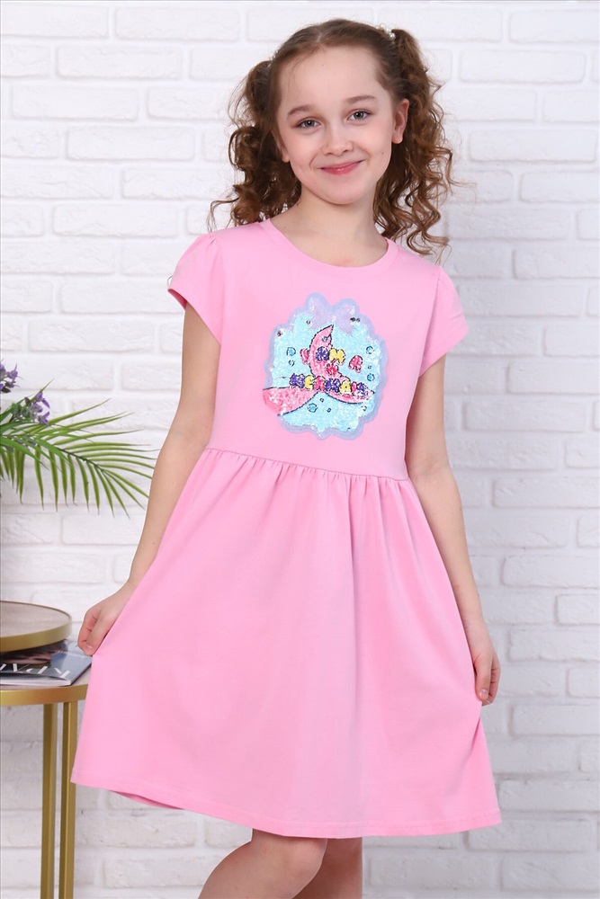 Это красивое и яркое платье для девочки обязательно оценят маленькие модницы. Модель декорирована нашивкой с пайетками, которые меняют цвет одним движением руки и создают веселое настроение. Идеально подходит для повседневной носки дома и в детский сад, также для летних прогулок, для похода в гости или на праздник. Данная модель сшита из качественного трикотажа. Для сохранения первоначальных свойств изделия, важно соблюдать рекомендации по уходу.
