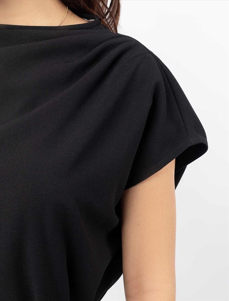 Параметры модели на первом фото: Рост 170, бюст 89, талия 63, бедра 92 Лаконичное платье сшито из эластичного крепа. Достаточно сдержанный вырез горловины хорошо комбинирует с цельнокроеным рукавом и мягкой драпировкой на плече. На спинке застежка из двух пуговиц. Ткань почти не мнется и хорошо держит форму. В подарок идет ремешок из эко-кожи.