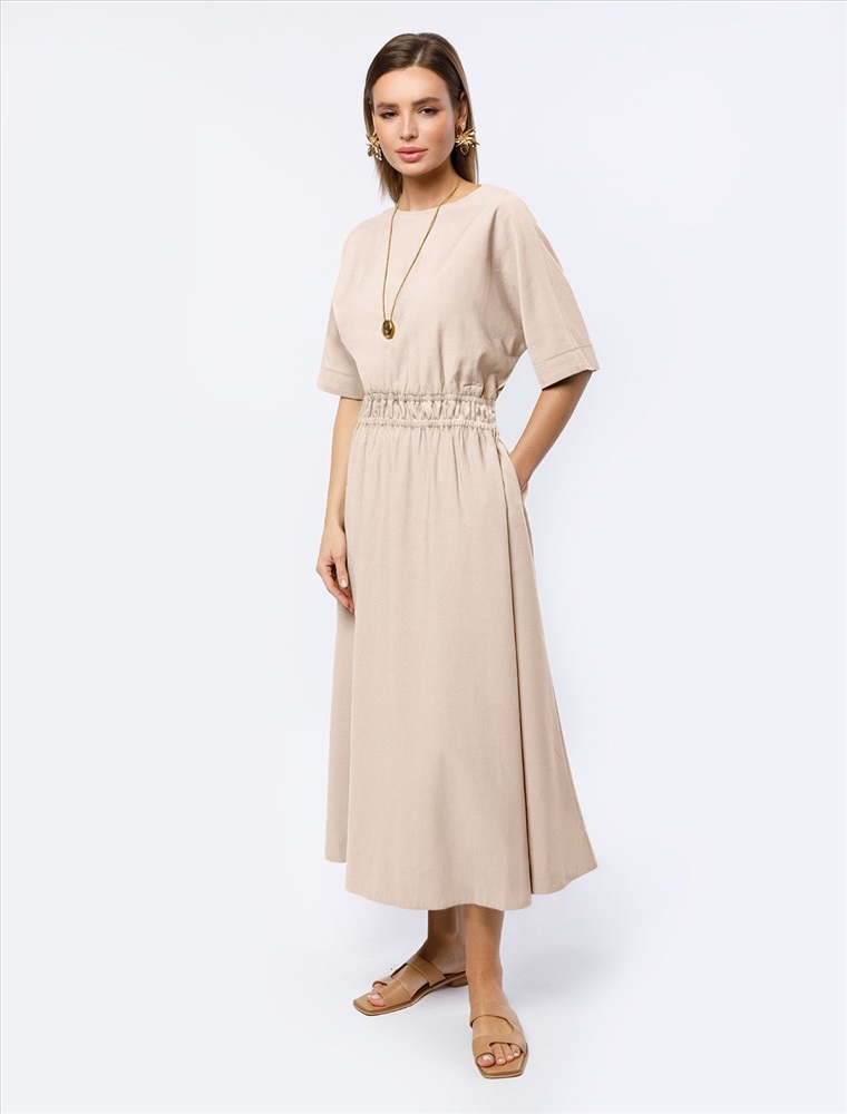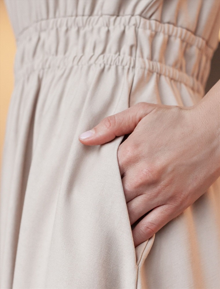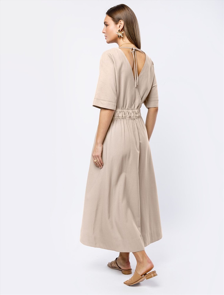 Платье выполнено из плотного лиоцелла. Модель с юбкой полусолнце и карманами дополнена эластичным поясом на талии. На спинке изделия вырез на запАх с лентами из основного полотна. Ткань хорошо держит форму, плавно драпируется и не просвечивает. В теплое время года приятно охлаждает кожу. Добавление синтетических волокон в составе изделия, предотвращает сминаемость и поддерживает формоустойчивость.