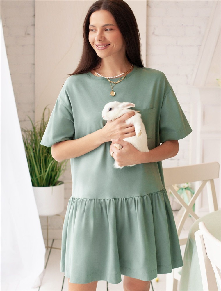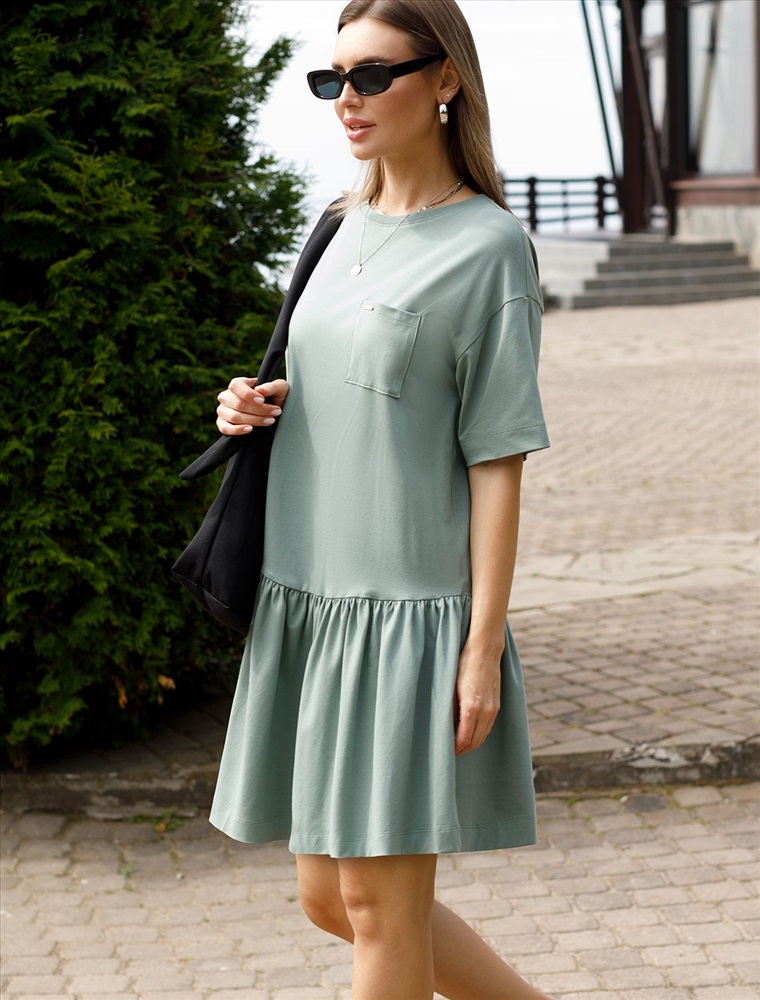 Параметры модели на первом фото: Рост 170, бюст 89, талия 63, бедра 92 Платье выполнено из премиального хлопка. Трендовый верх как у футболки с карманом, задает лаконичный стиль, а пышный низ вносит в образ романтичный дух. За счет эластана в изделии очень комфортно. Подходит для любой фигуры. Изделие дополнено металлическим логотипом бренда. Комментарии к товару