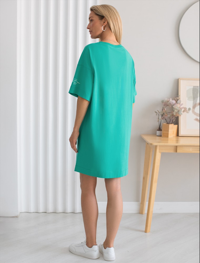 Плотность: 170 Г/м2 Размер товара на первом фото: 42 Платье из премиального хлопка станет идеальным выбором для создания комфортного и стильного образа. Ткань приятна к телу, отличается мягкостью и позволяет коже дышать, обеспечивая максимальный комфорт в течение всего дня. Свободный крой дарит свободу движений, подчеркивая непринужденность стиля, а аккуратная вышивка на рукаве и небольшой разрез внизу платья добавляют утонченности. Благодаря сочетанию натуральных волокон с эластаном, изделие формоустойчиво и сохраняет первоначальный вид после многочисленных стирок. Лаконичный дизайн делает это платье универсальным вариантом на любой случай. Комментарии к товару