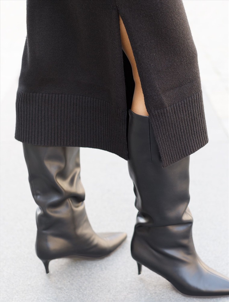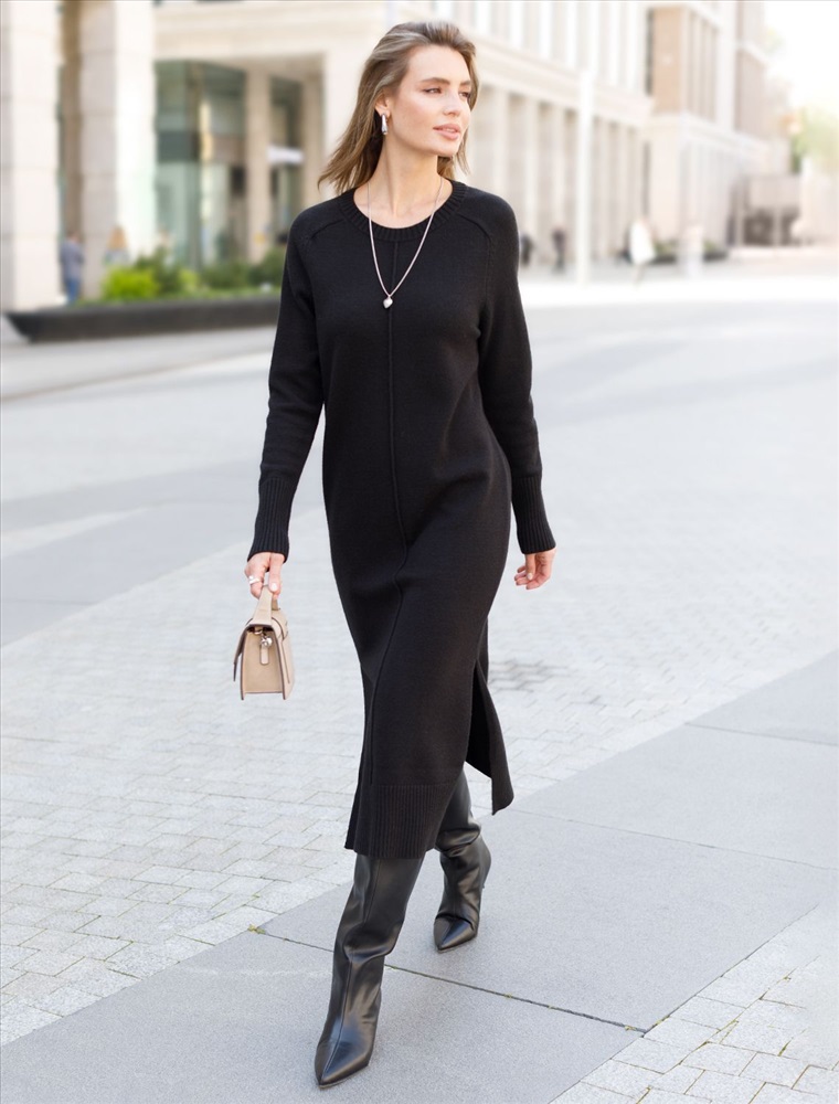 Плотность: 7 GG Размер товара на первом фото: 42 Платье длины миди выполнено из мягкой меланжевой пряжи с кашемиром. Модель прямого силуэта дополнена двумя высокими боковыми разрезами. Вязаный кант вертикально проходящий по всему изделию, визуально стройнит и вытягивает силуэт. При желании можно подчеркнуть линию талии, используя контрастный пояс. Комментарии к товару