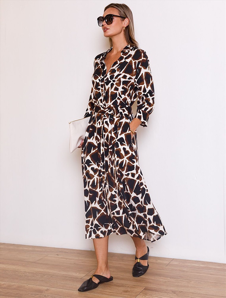 Платье выполнено из 100% вискозного твила. В комплект входит пояс из основного полотна с золотистой пряжкой. Модель дополнена карманами. Ткань приятно охлаждает кожу в жаркое время года и изящно струится при каждом движении.