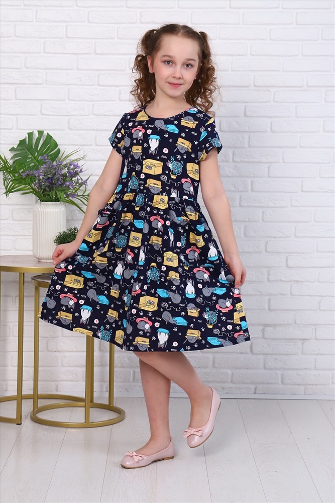 Страна производства: Россия Это красивое и нежное платье для девочки обязательно оценят маленькие модницы. Платье с коротким рукавом идеально подходит для повседневной носки дома и в детский сад, также для летних прогулок, для похода в гости или на праздник. Данная модель сшита из качественного трикотажа (100% хлопок). Для сохранения первоначальных свойств изделия, важно соблюдать рекомендации по уходу.