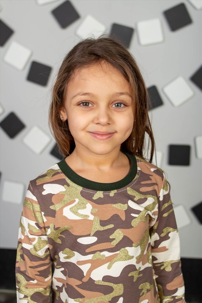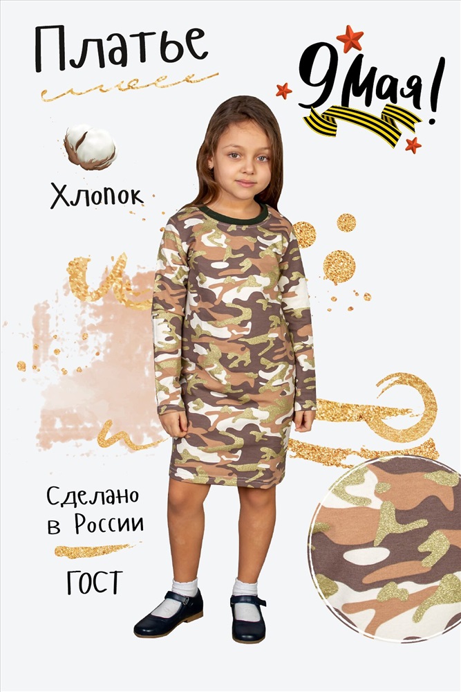 Страна производства: Россия Детское платье для девочки в спокойных камуфляжных тонах для юных разбойниц.