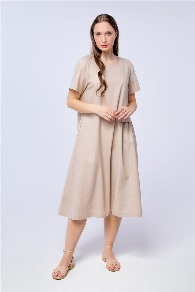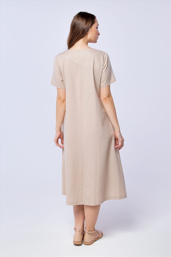 ID товара: 884102 Состав: 55% Лен; 45% Хлопок Сезон: Весна/Лето Длина: Ниже колена Фасон: Свободный крой Рукав: Короткие Вырез горловины: Округлый Тип карманов: В шве Основная ткань: Лён | Лен, коттон Стиль: Повседневный Страна бренда: Россия Страна производства: Россия Летнее платье А - силуэта отличный вариант как для офиса, так и для летних прогулок. Акцентная сборка на талии добавляет силуэту лёгкости и выгодно отличает платье от других, подобных моделей. Длинна миди подходит любому типу фигур, а длинна рукава позволяет деликатно скрыть проблемные места. Модель разработана специально для девушек с аппетитными формами, в ней учтены все желания наших покупательниц. Лён, из которого выполнено платье, является экологичным и дышащим материалом. Комментарии к товару